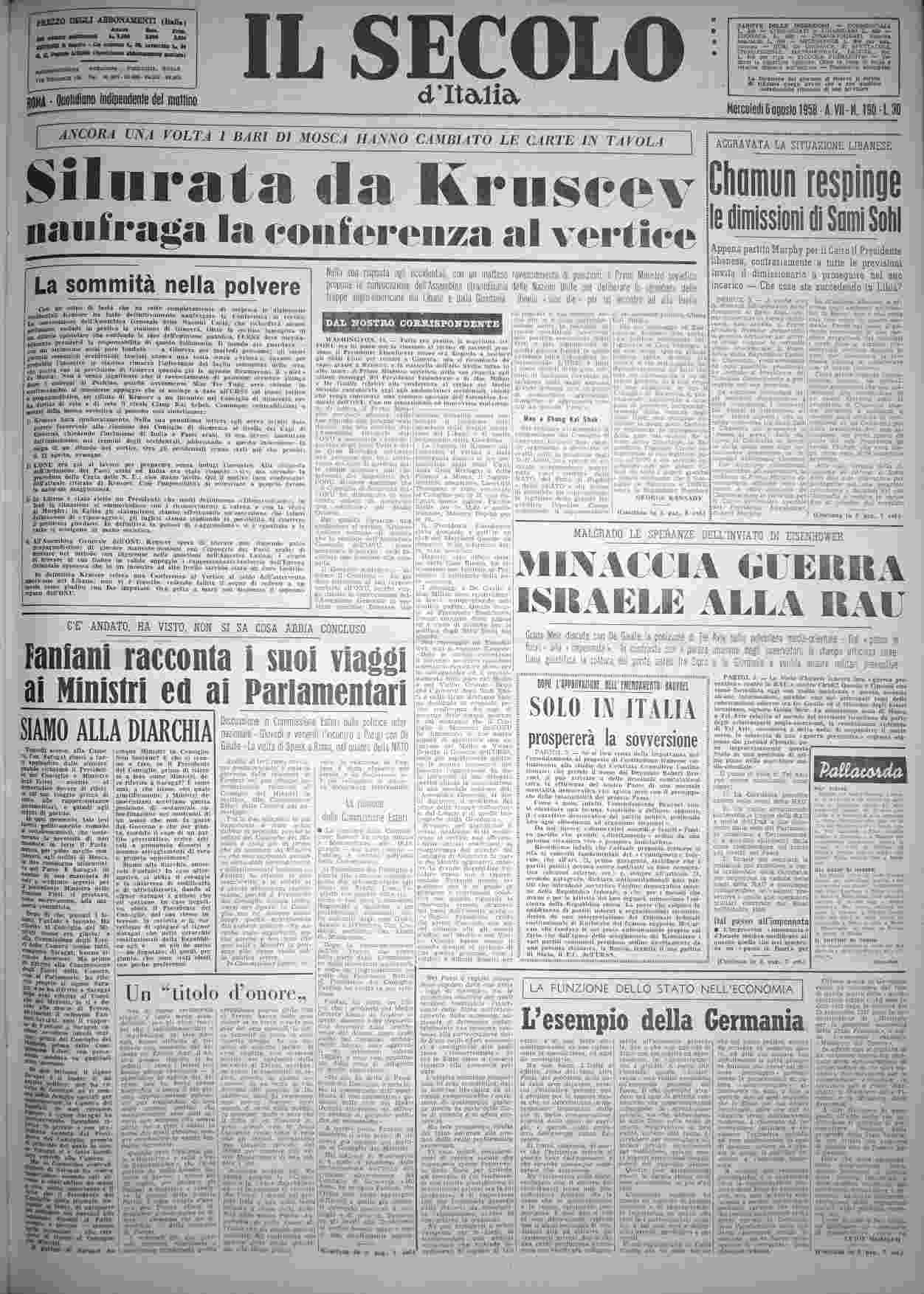 mercoledì 6 agosto 1958