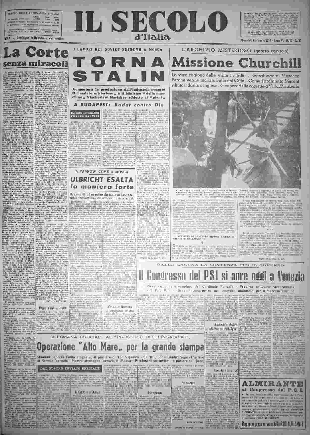 mercoledì 6 febbraio 1957