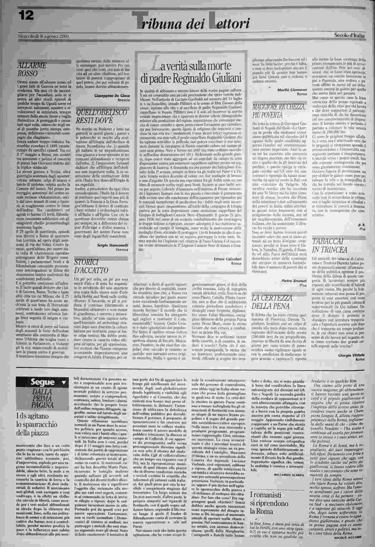 mercoledì 8 agosto 2001