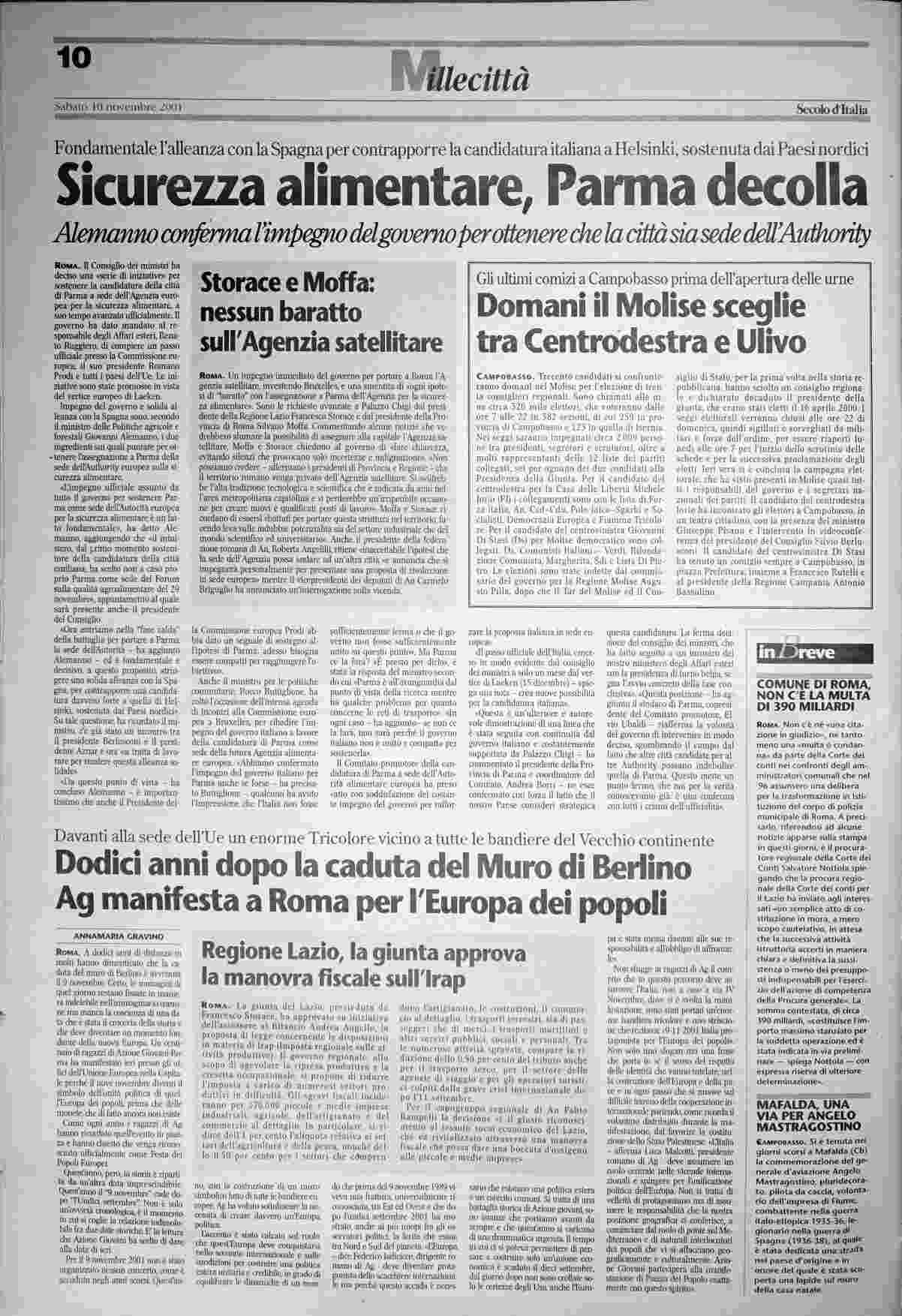 sabato 10 novembre 2001