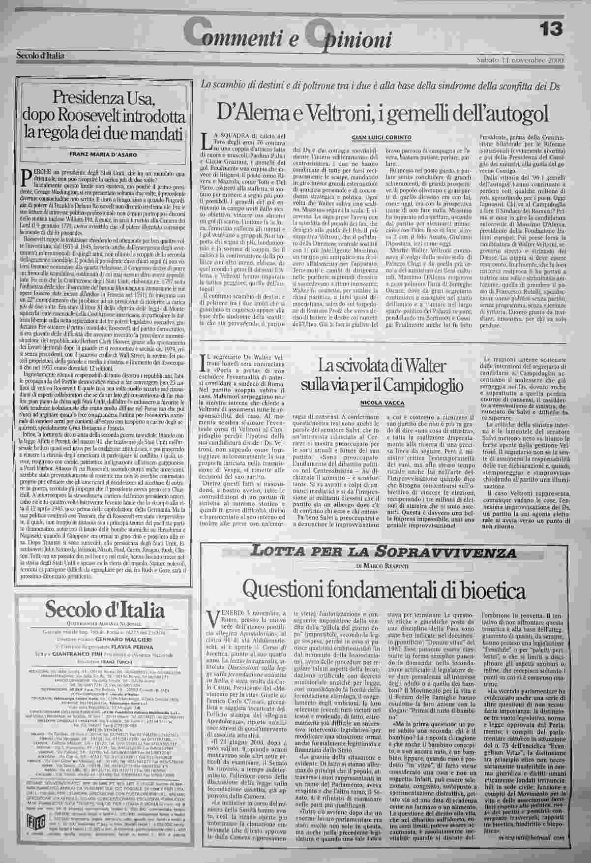 sabato 11 novembre 2000