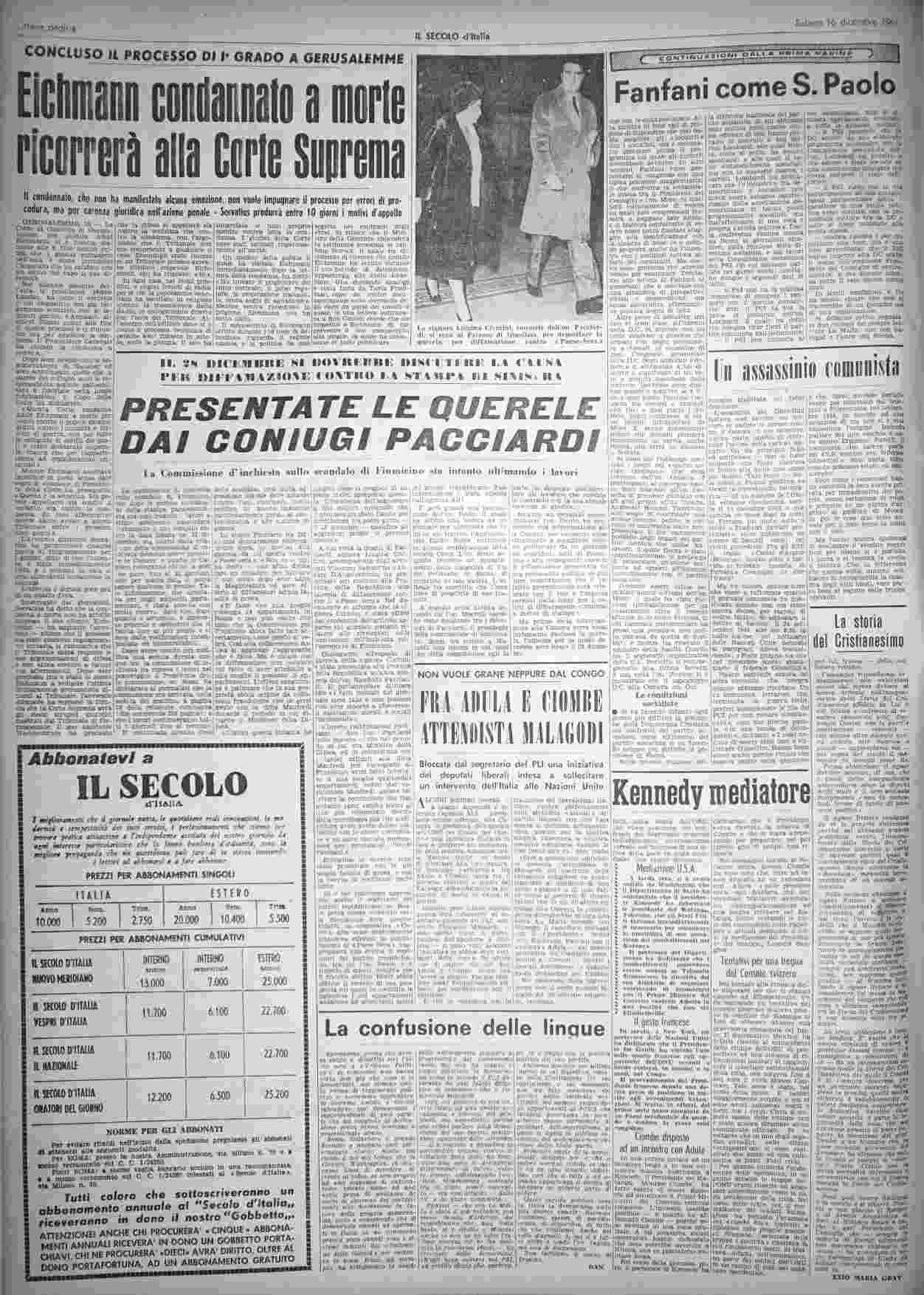 sabato 16 dicembre 1961