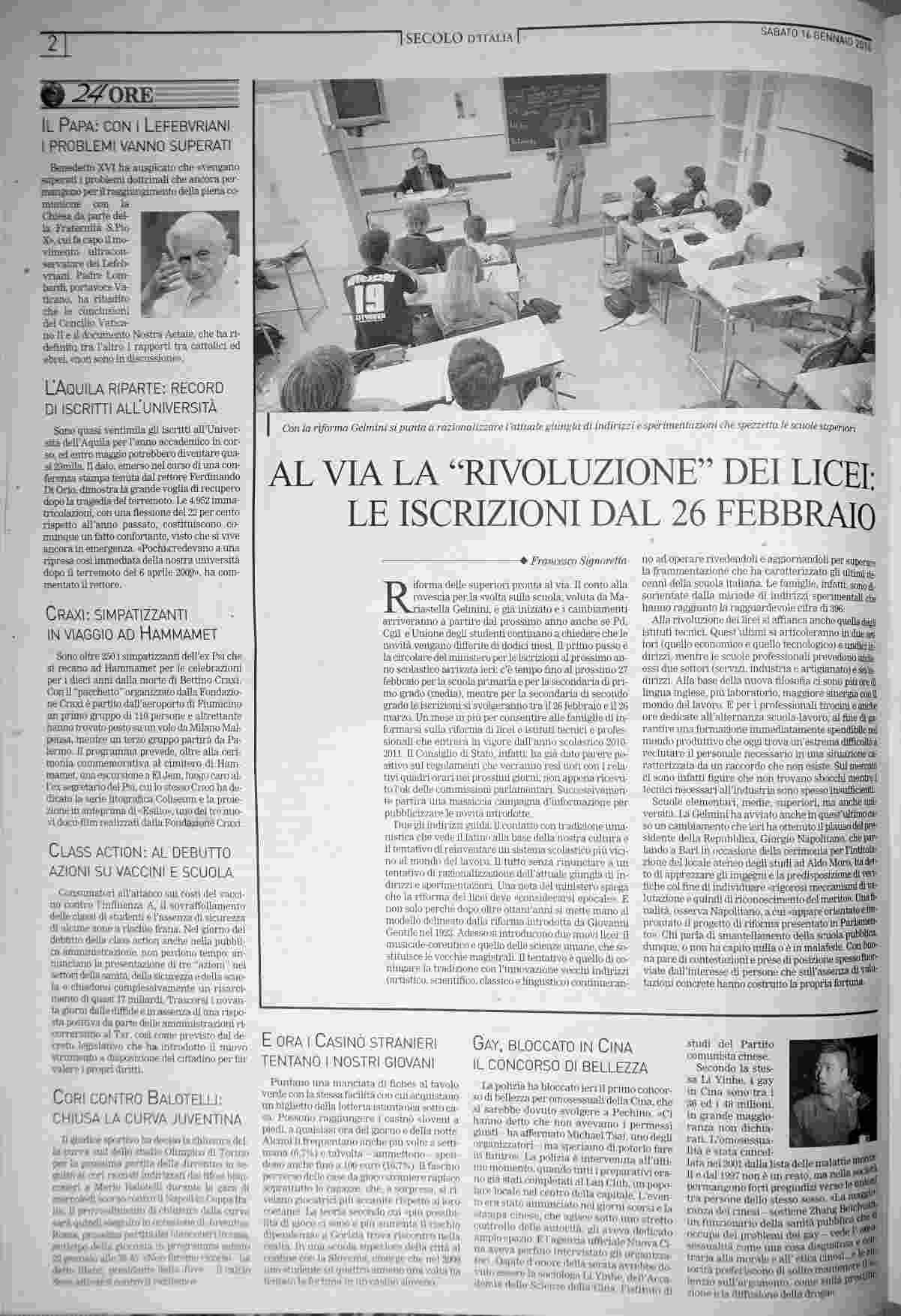 sabato 16 gennaio 2010