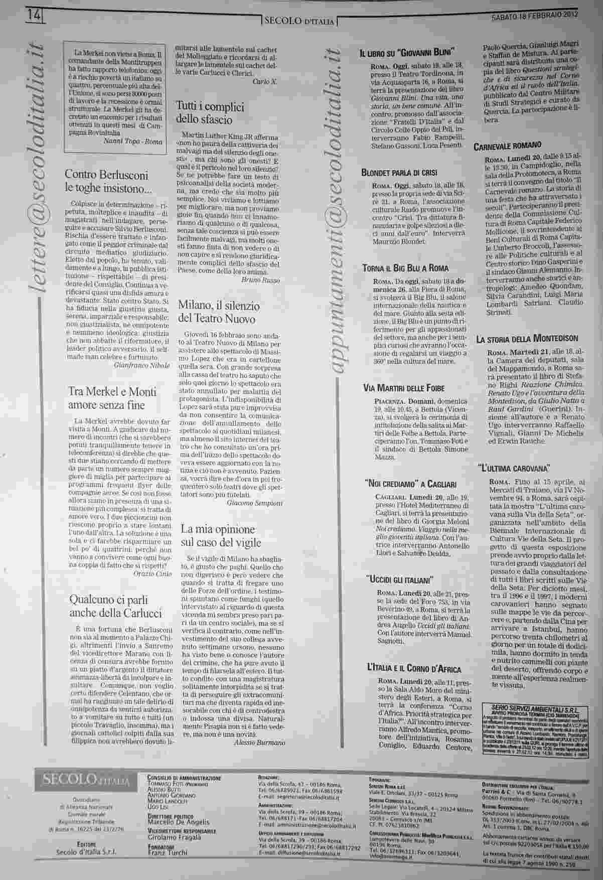 sabato 18 febbraio 2012