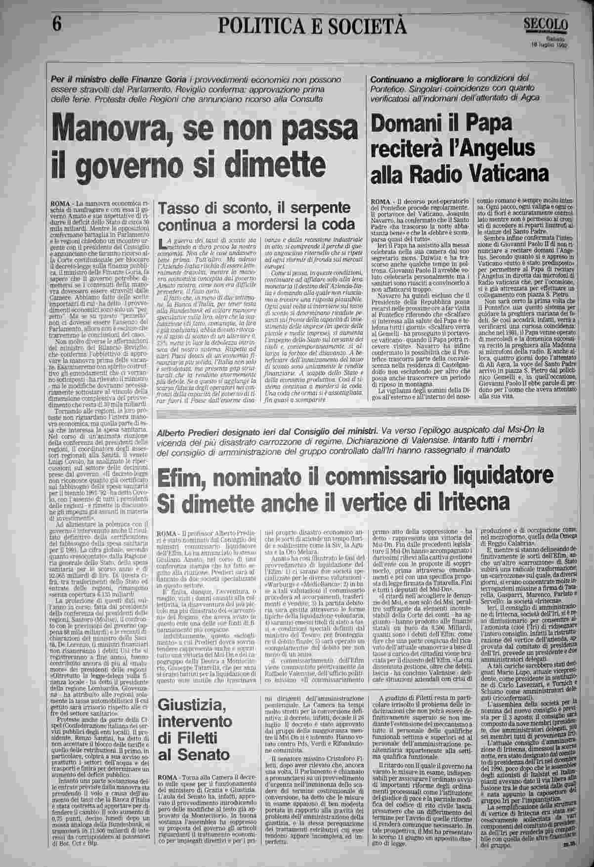 sabato 18 luglio 1992