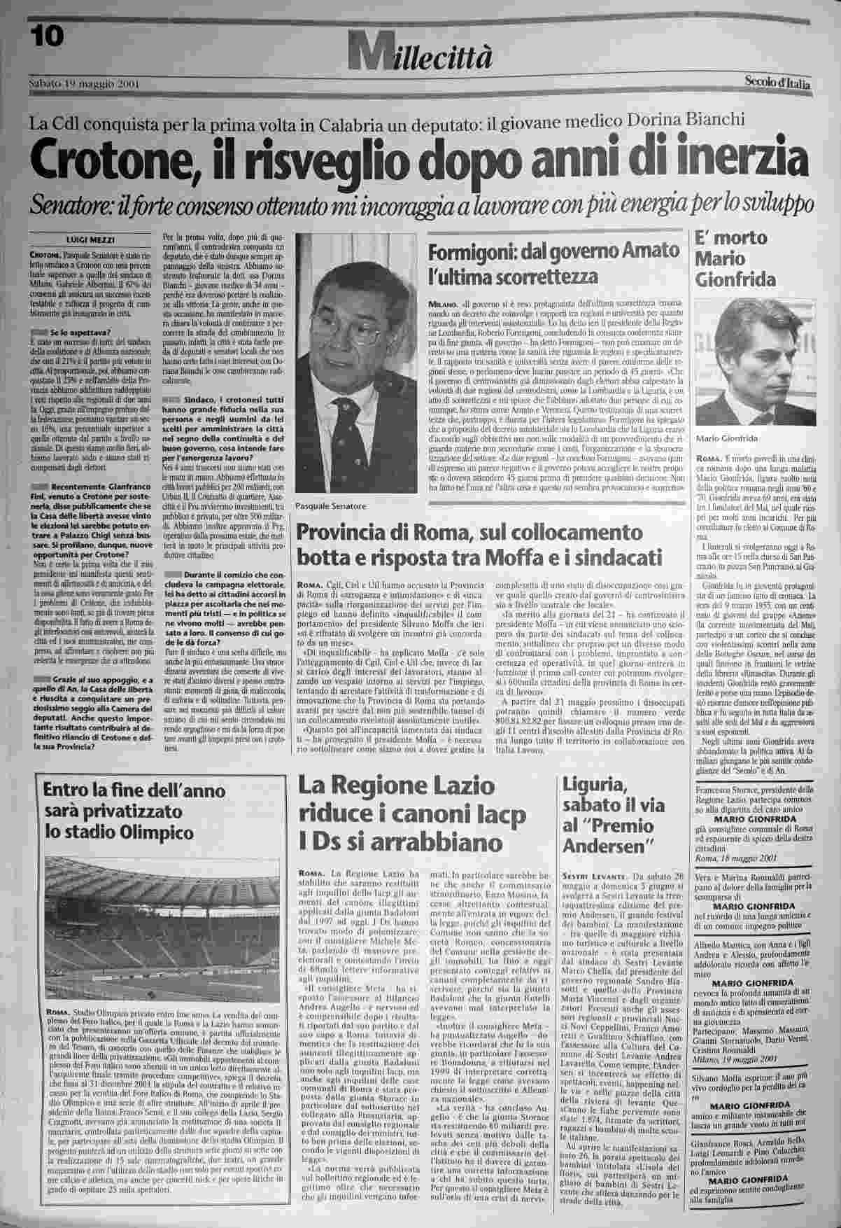 sabato 19 maggio 2001