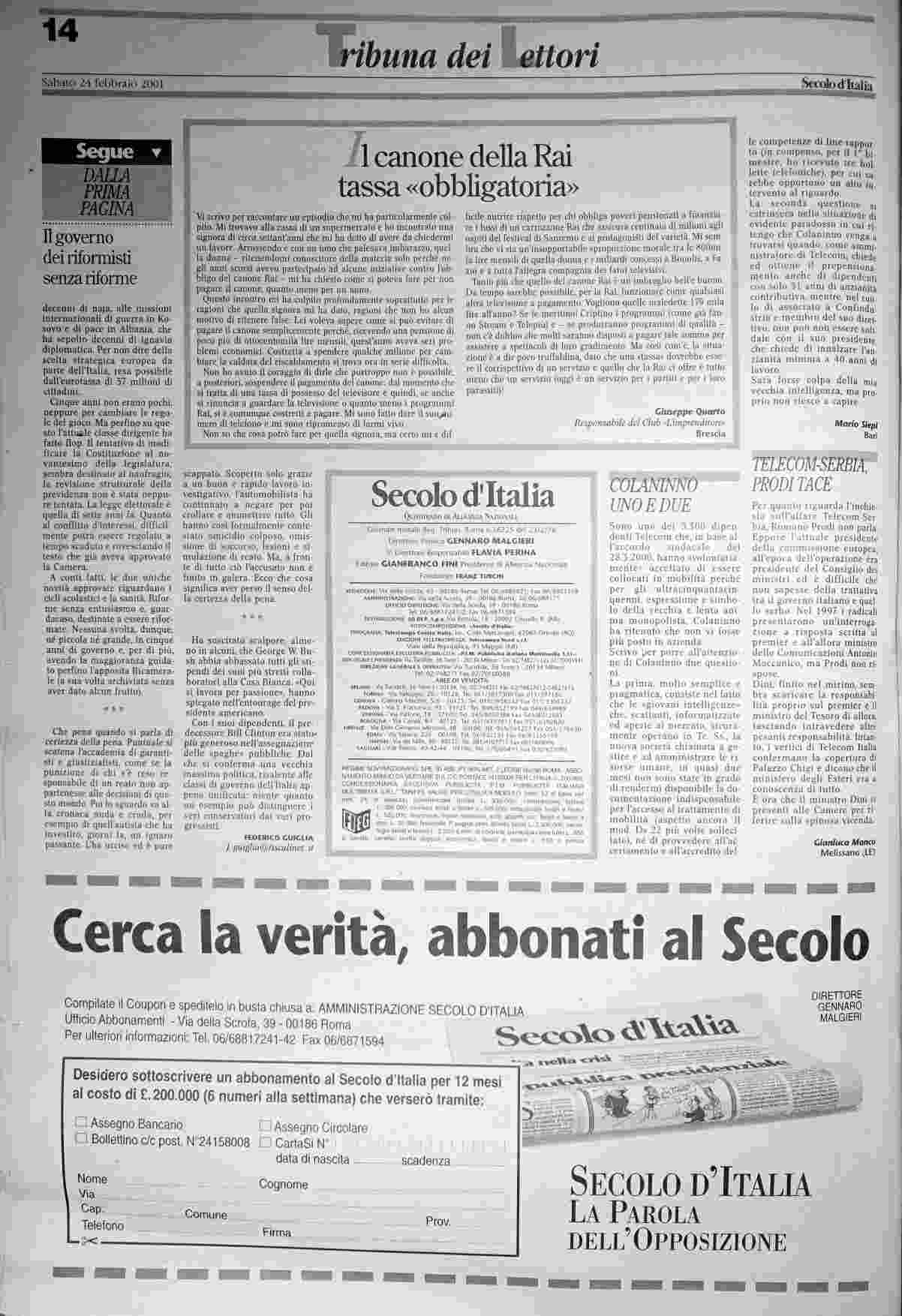 sabato 24 febbraio 2001