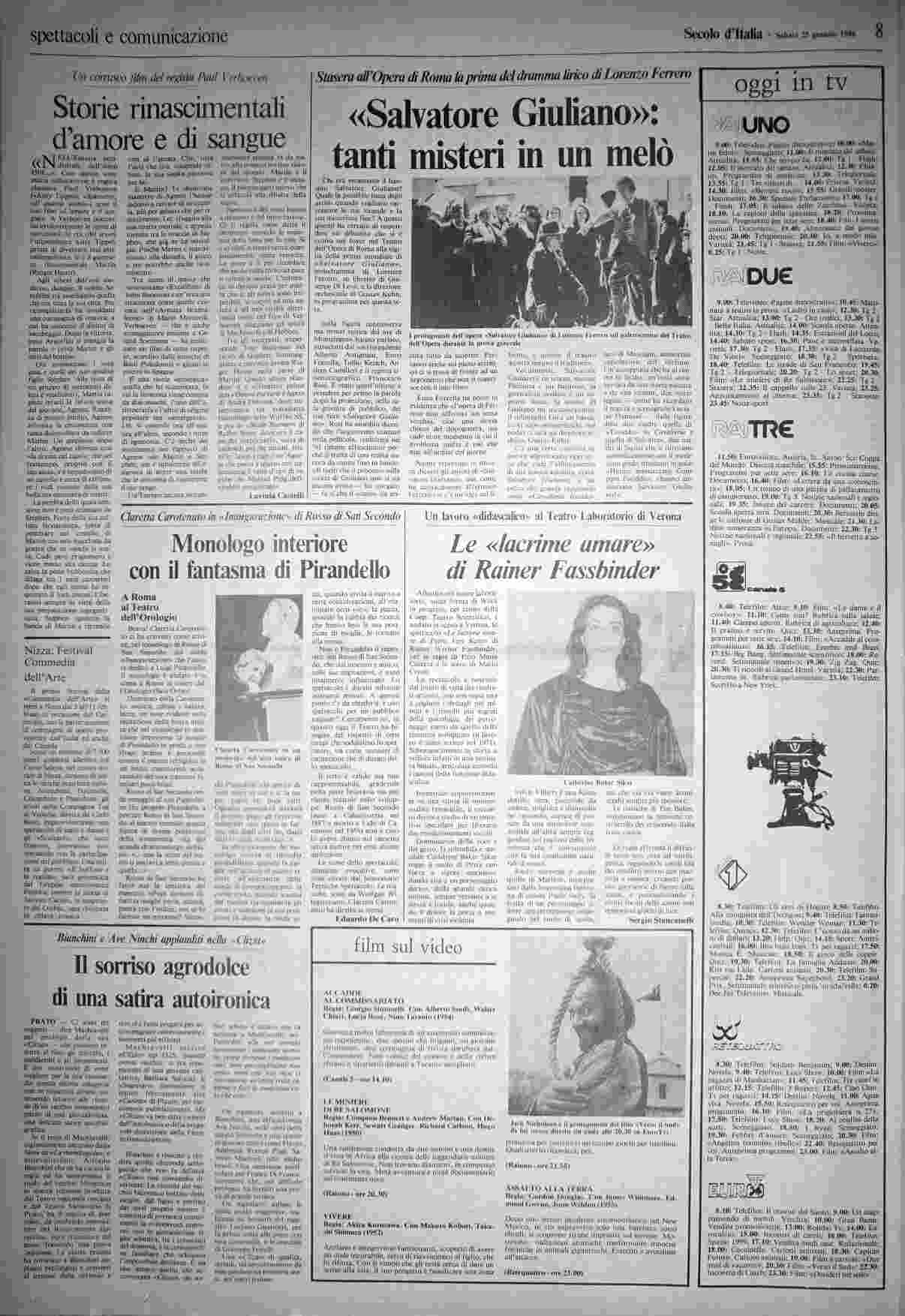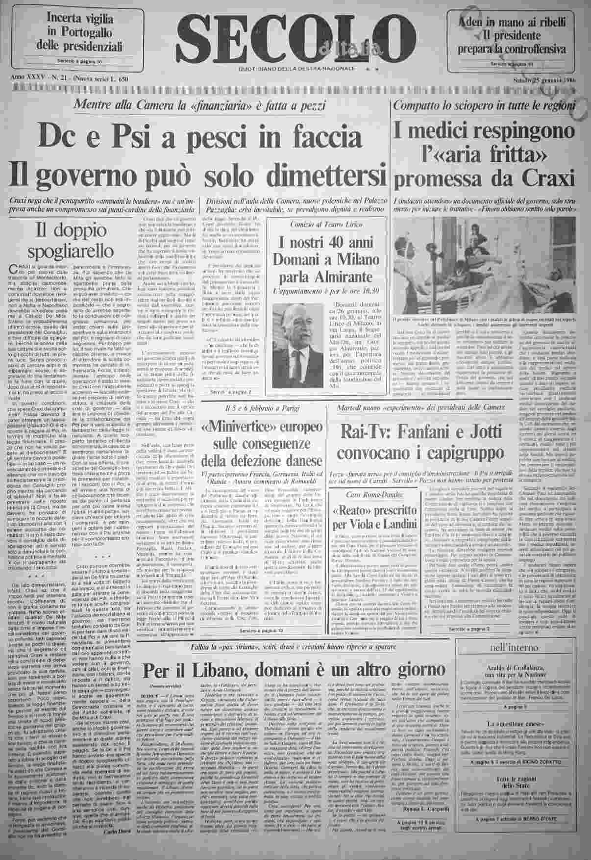 sabato 25 gennaio 1986