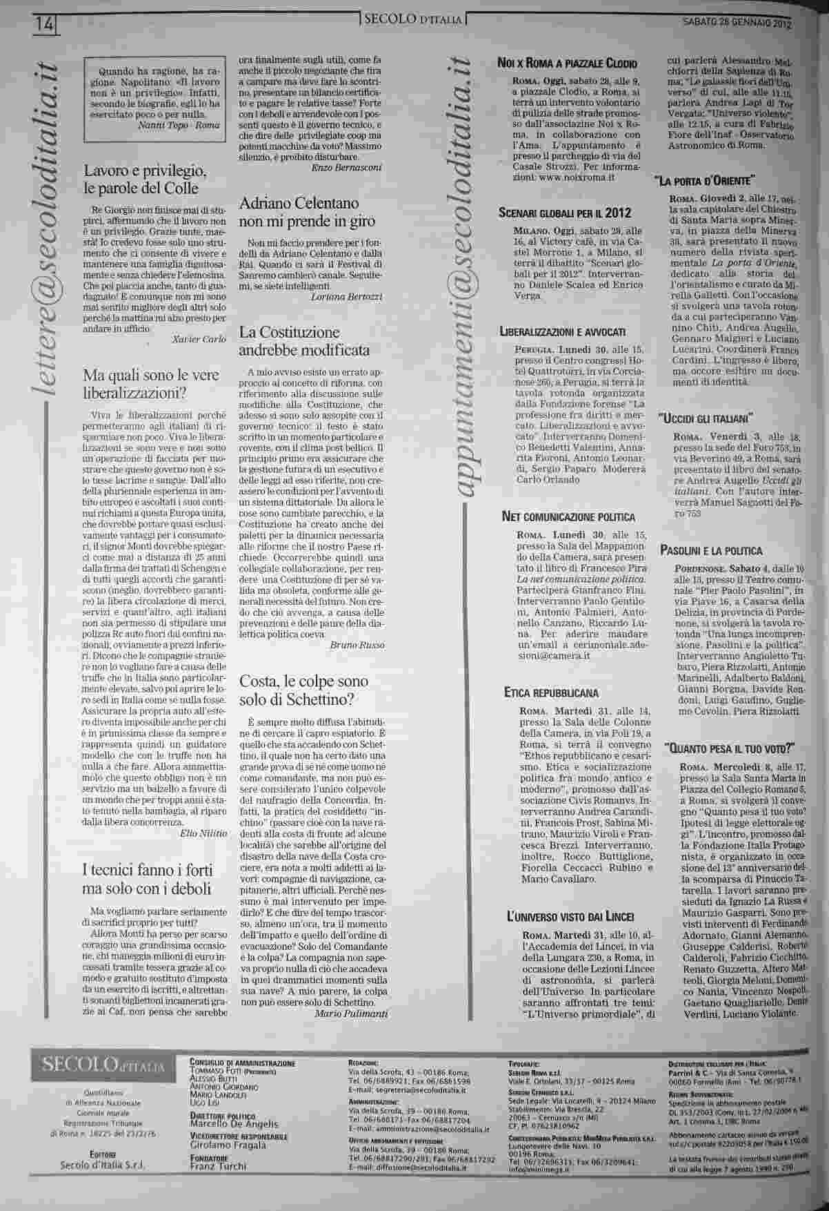 sabato 28 gennaio 2012