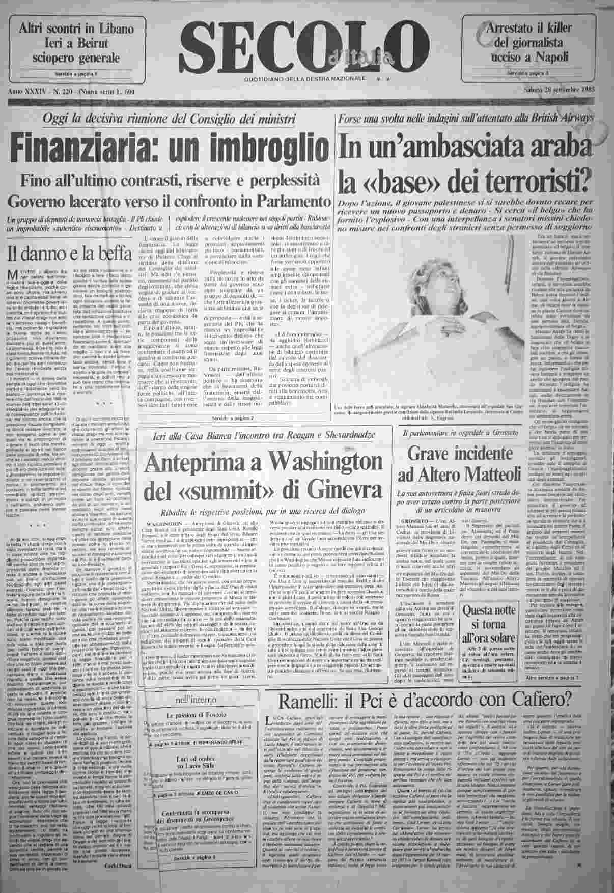 sabato 28 settembre 1985