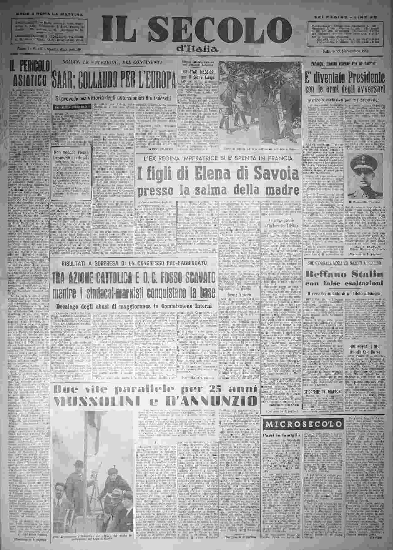 sabato 29 novembre 1952