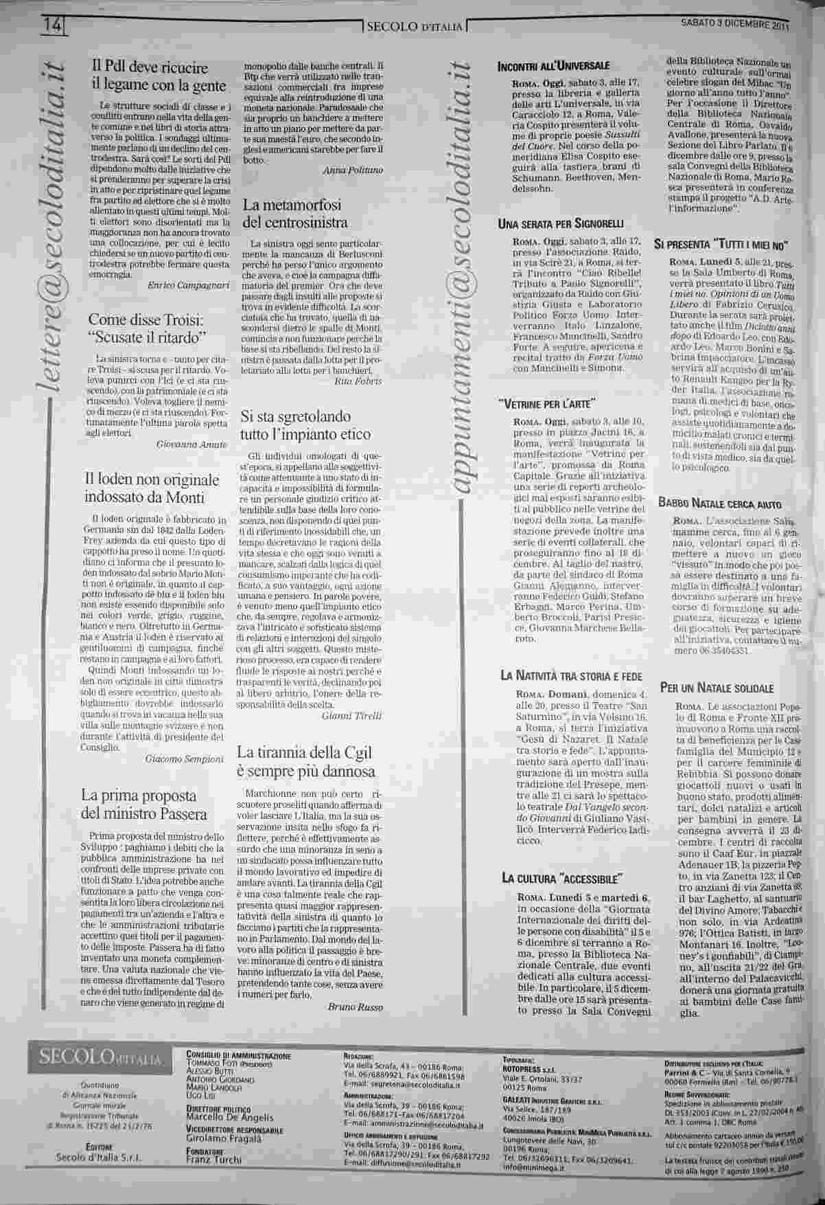sabato 3 dicembre 2011