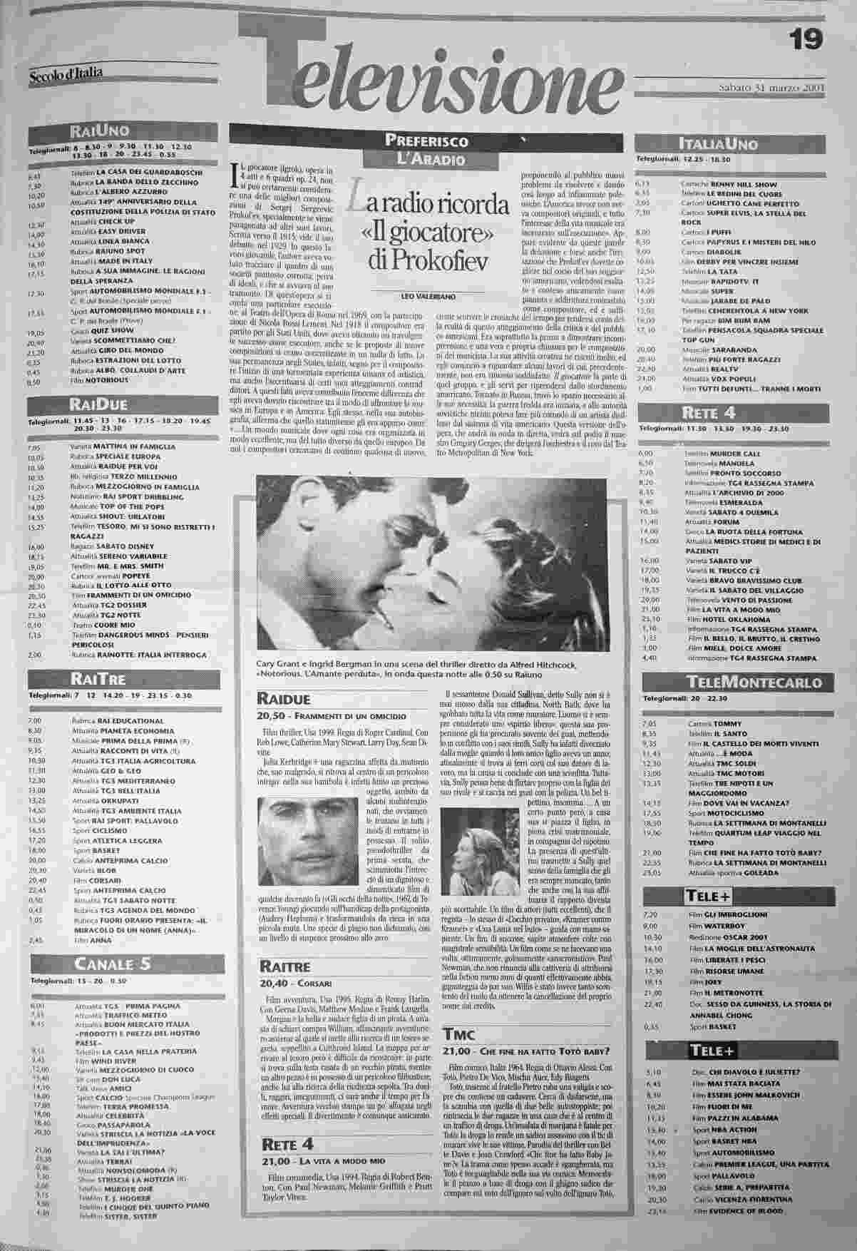 sabato 31 marzo 2001