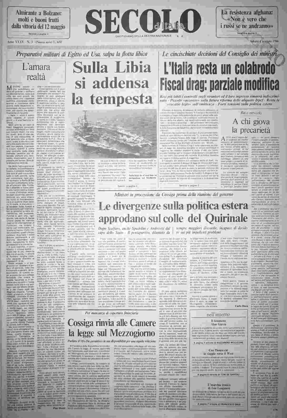 sabato 4 gennaio 1986