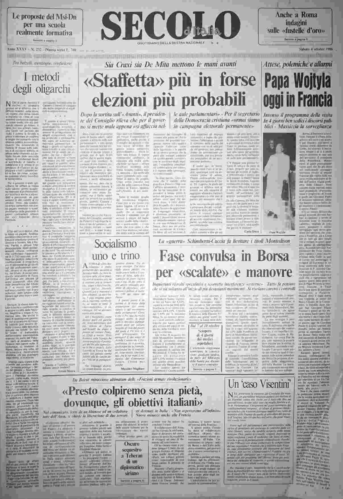 sabato 4 ottobre 1986