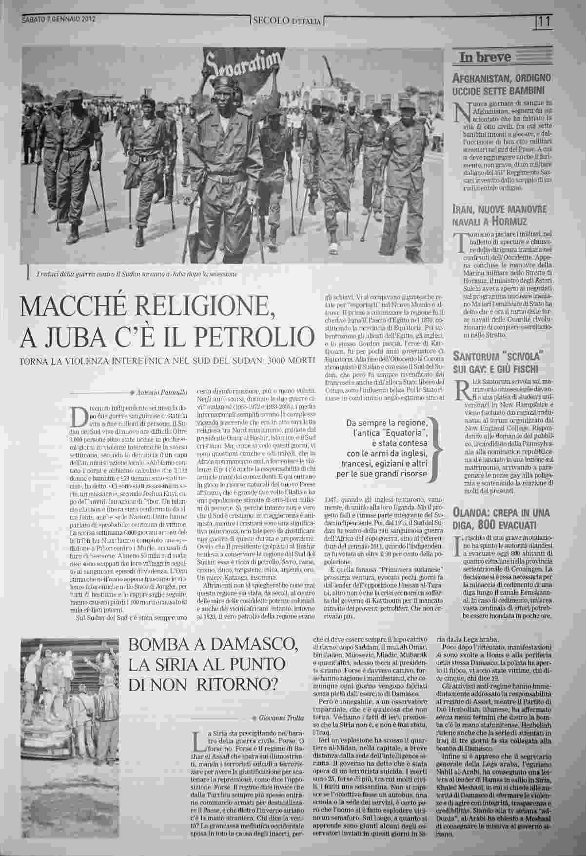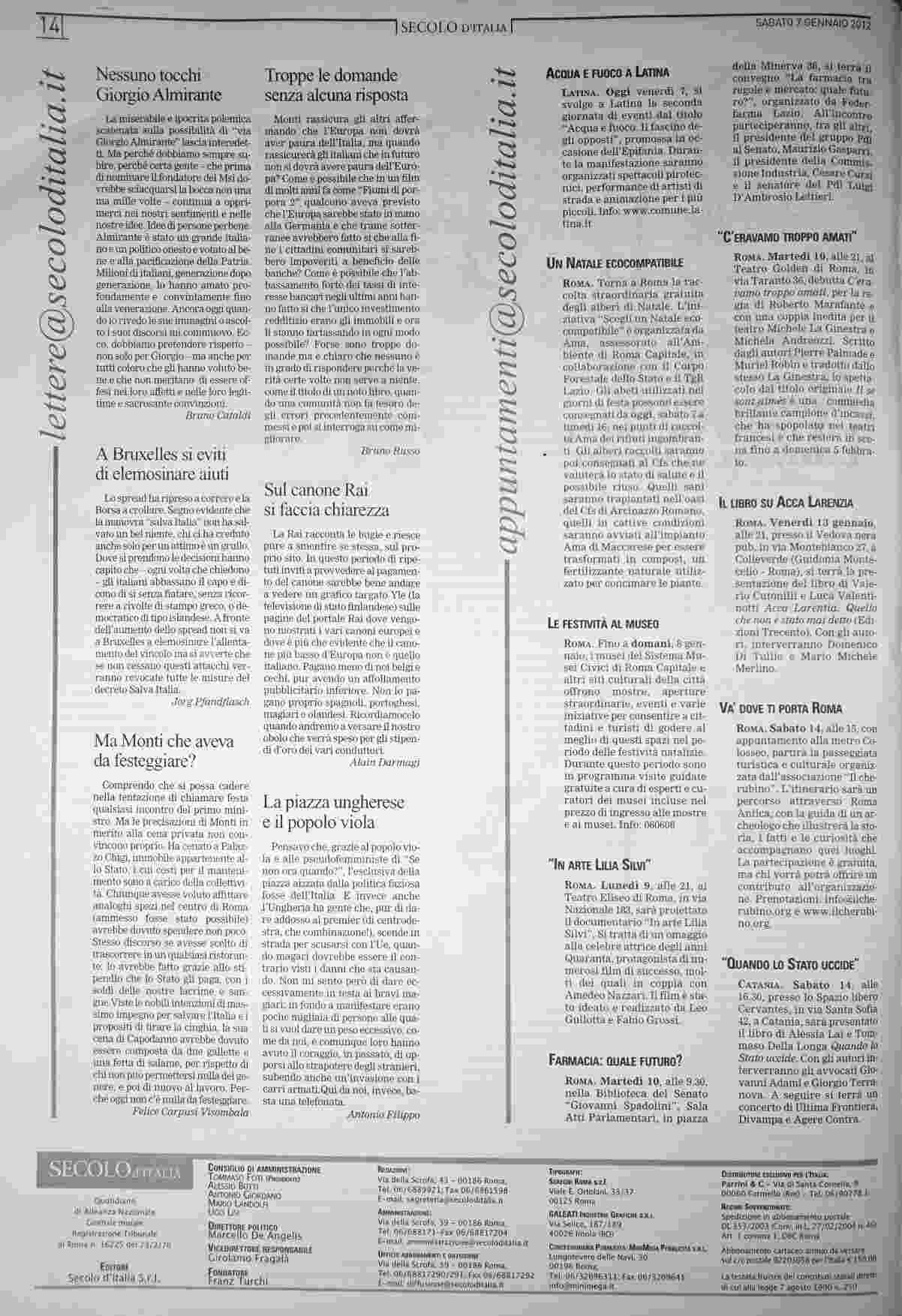sabato 7 gennaio 2012