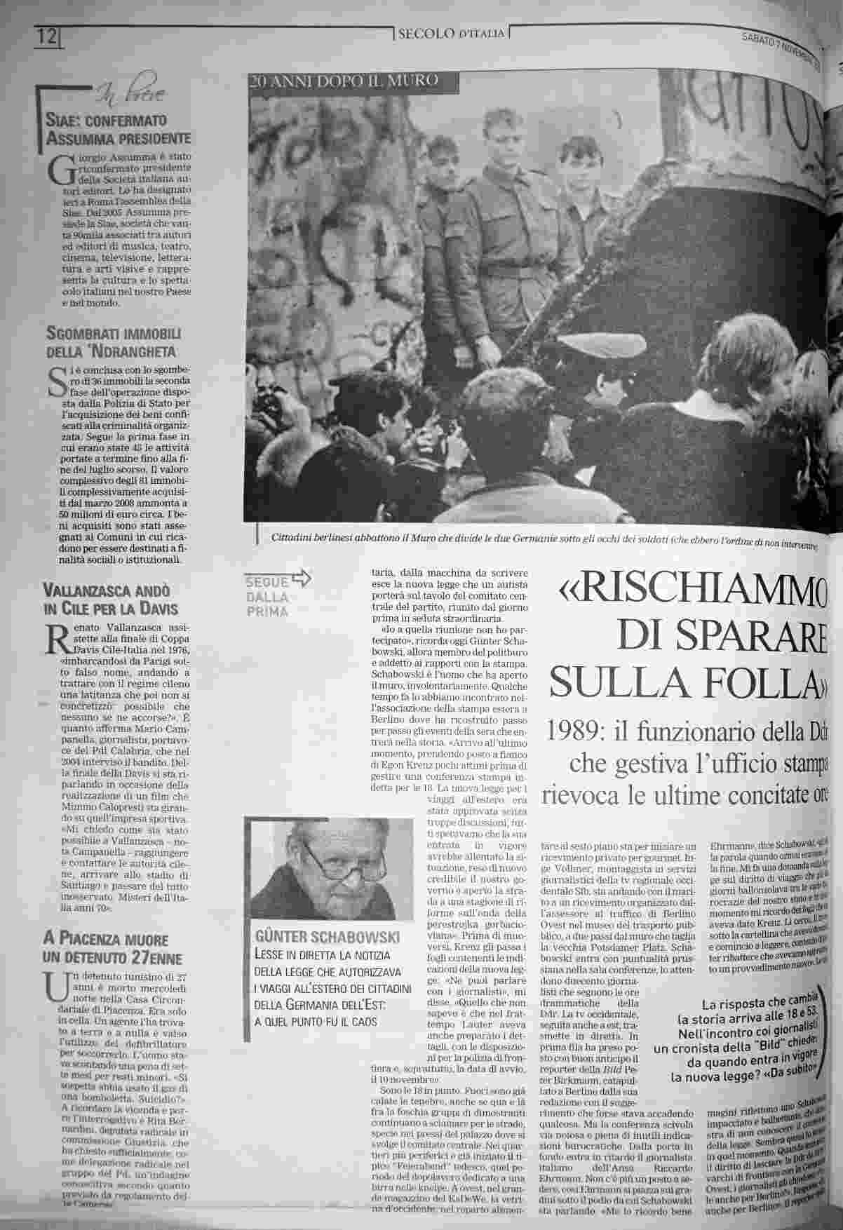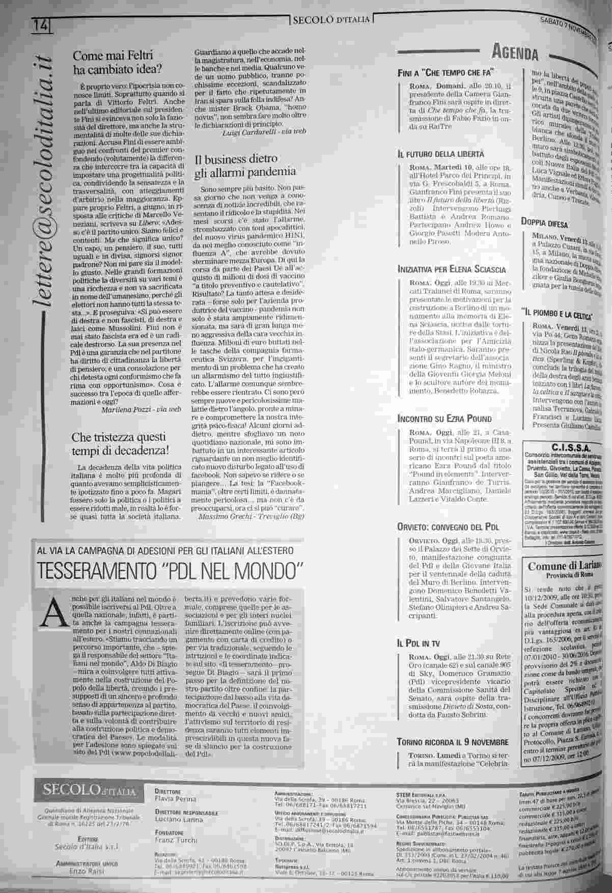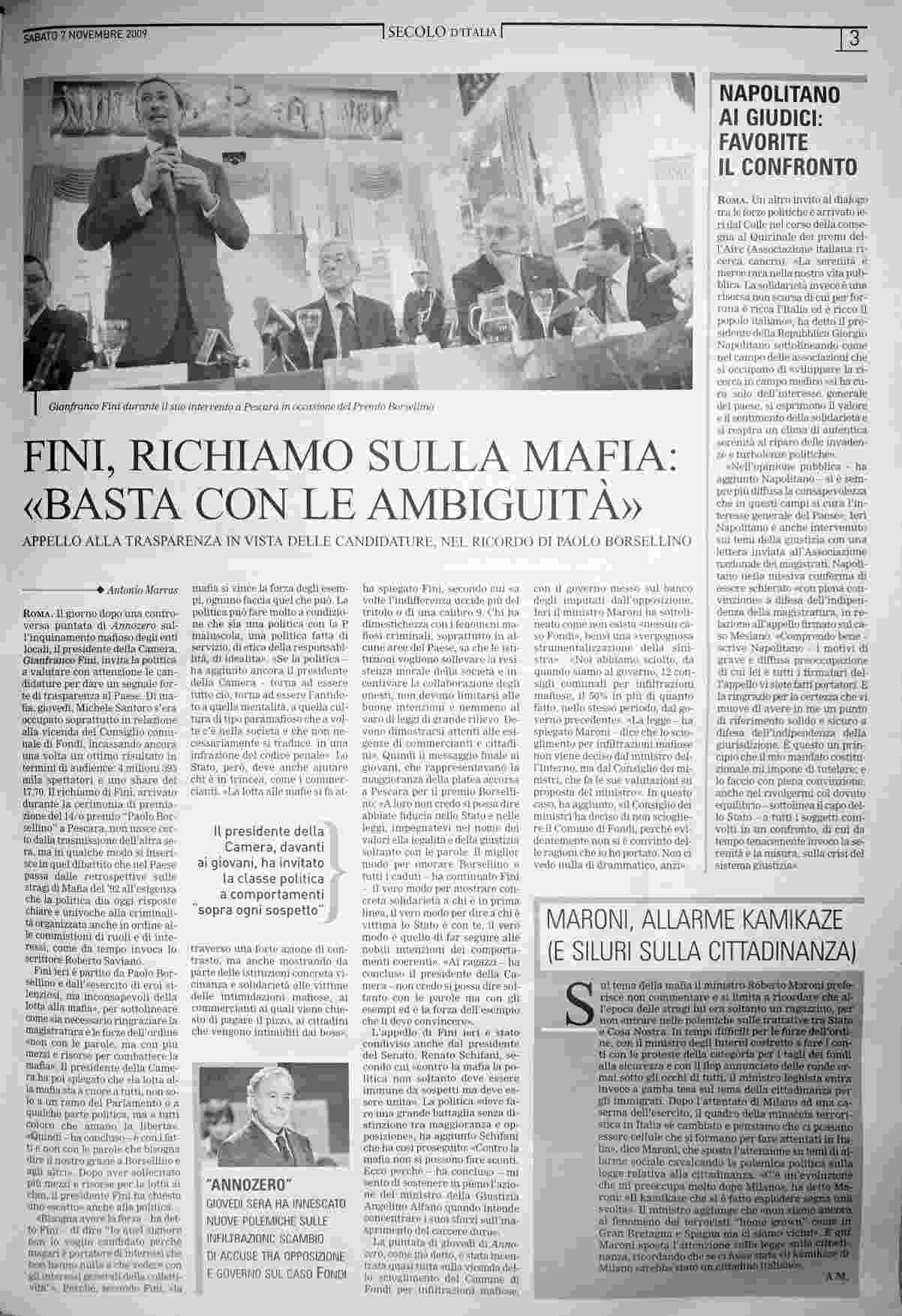 sabato 7 novembre 2009