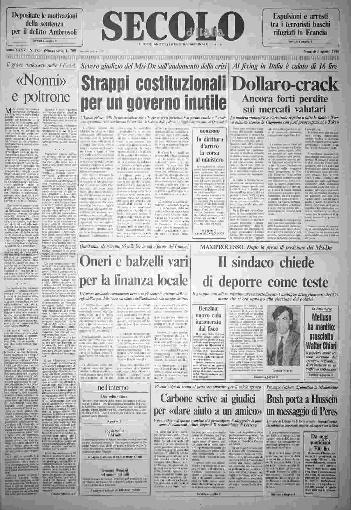 venerdì 1 agosto 1986