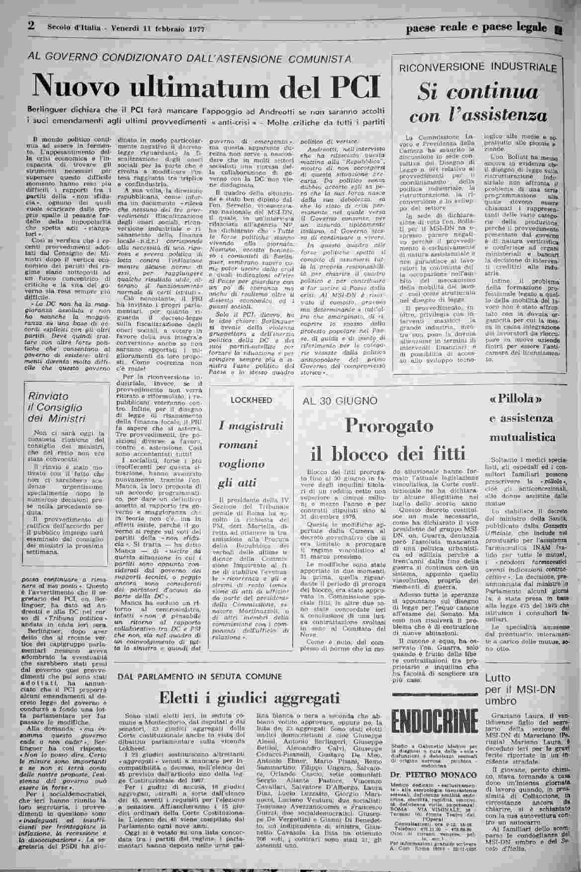 venerdì 11 febbraio 1977