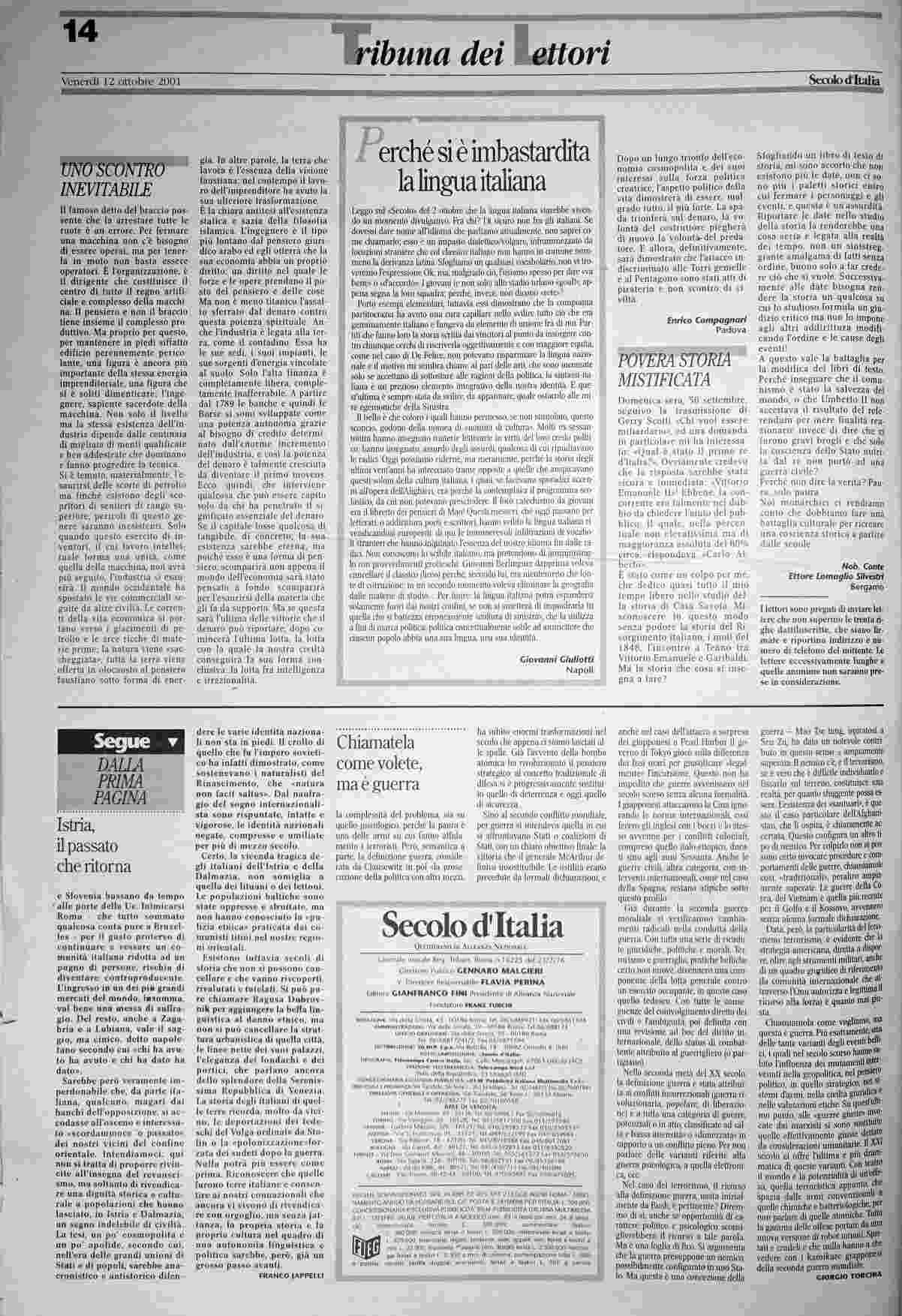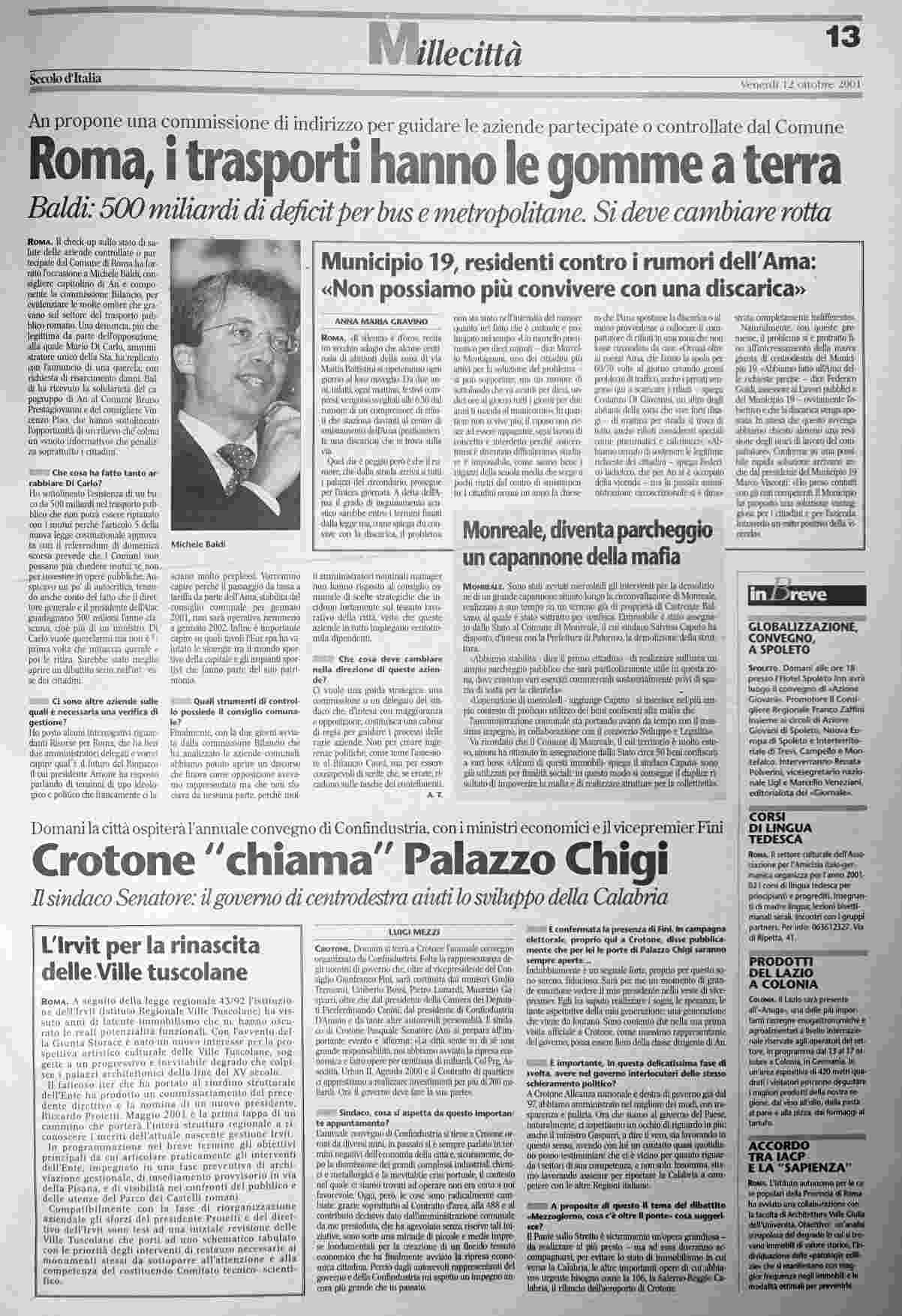 venerdì 12 ottobre 2001