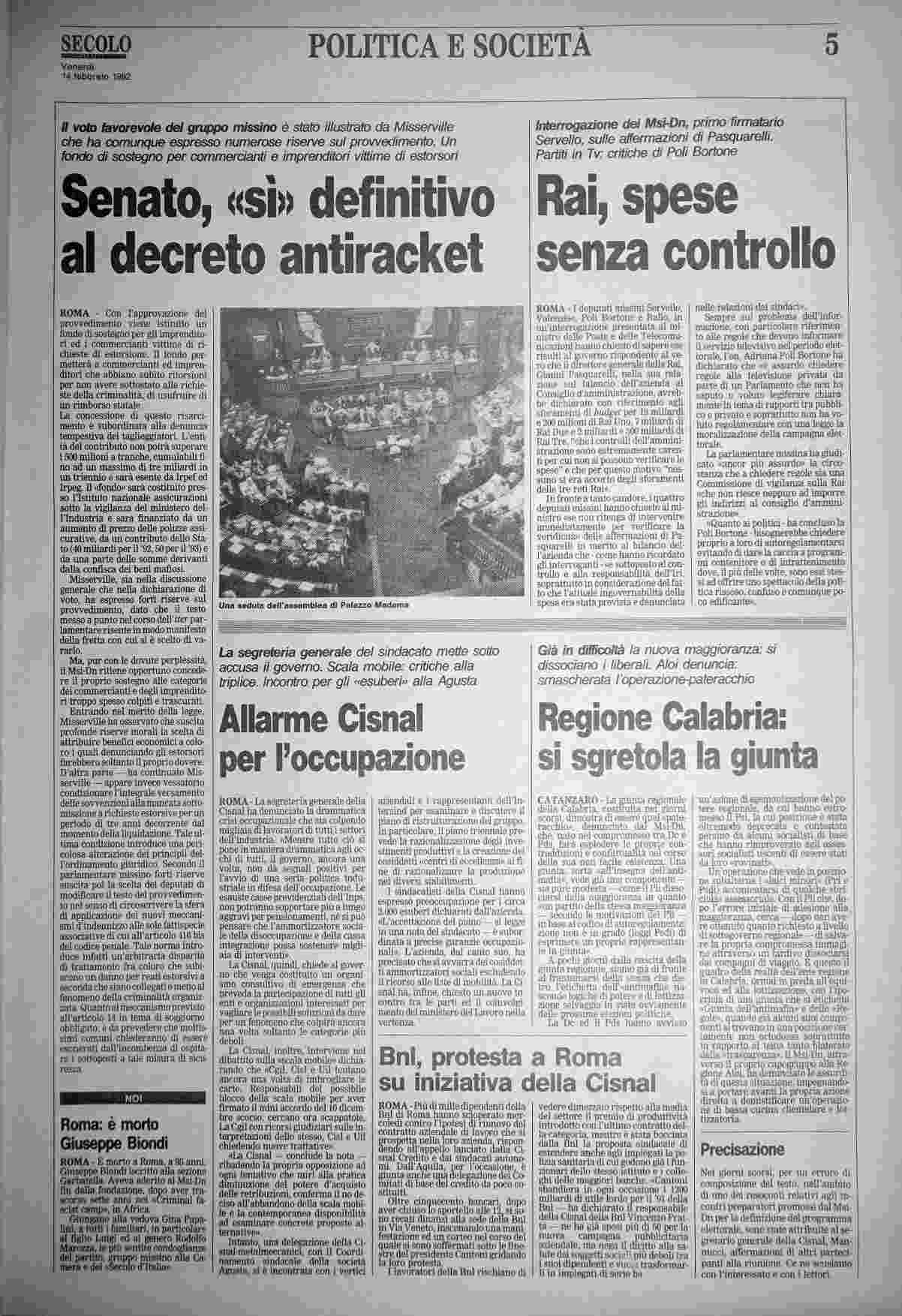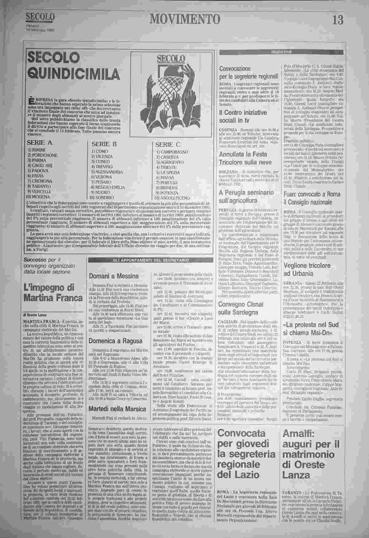 venerdì 14 febbraio 1992