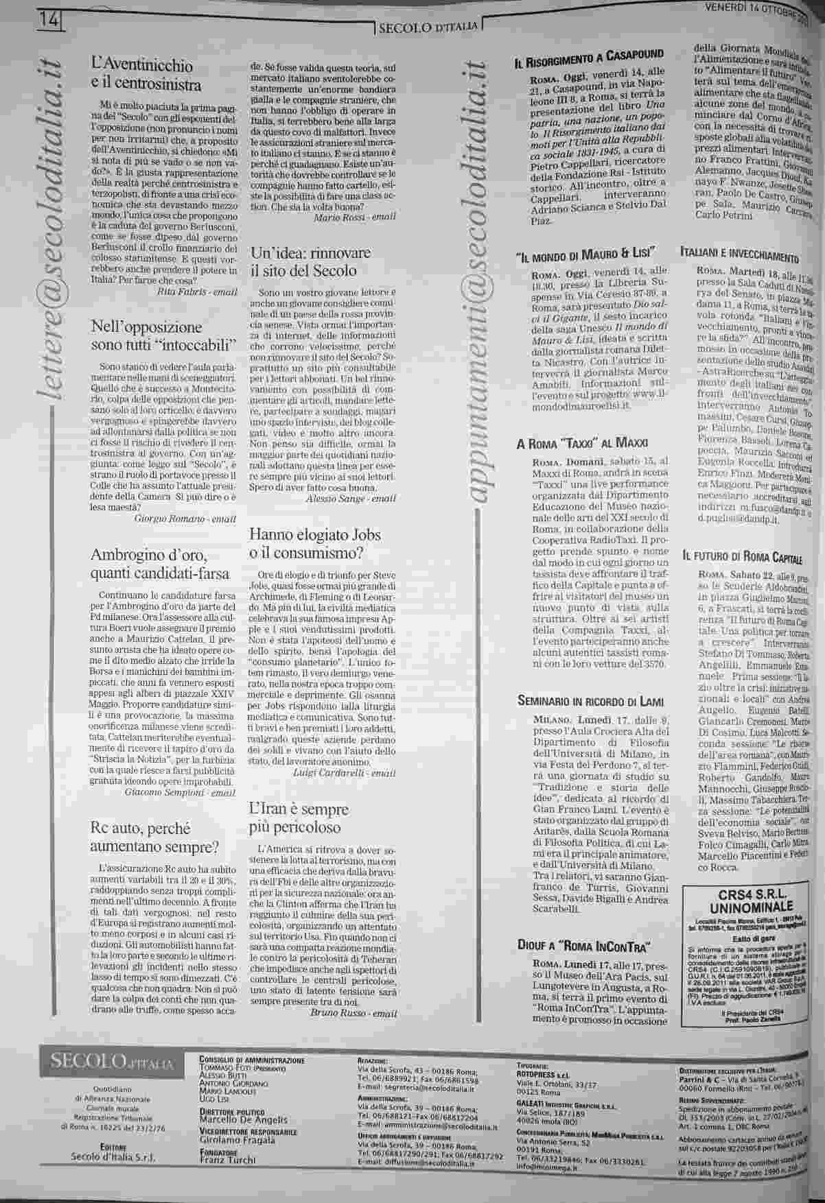 venerdì 14 ottobre 2011