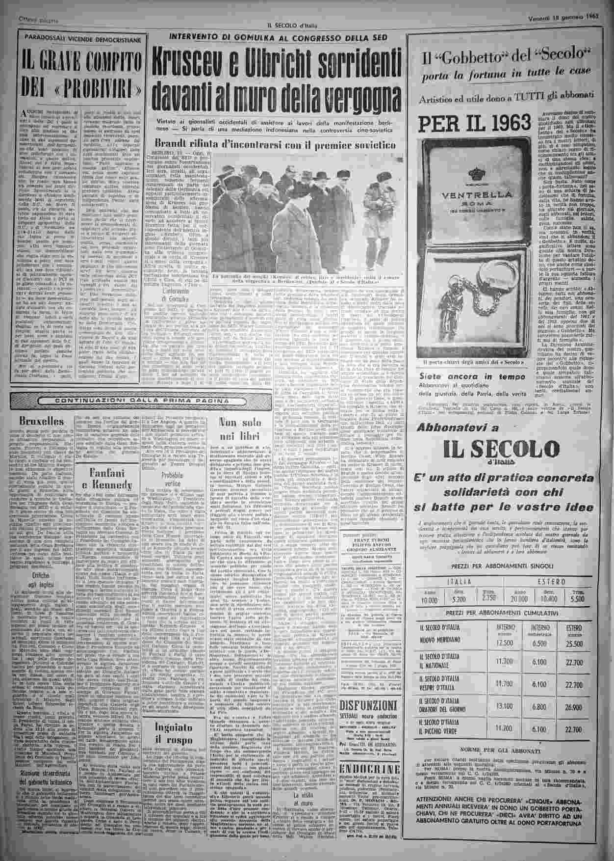 venerdì 18 gennaio 1963