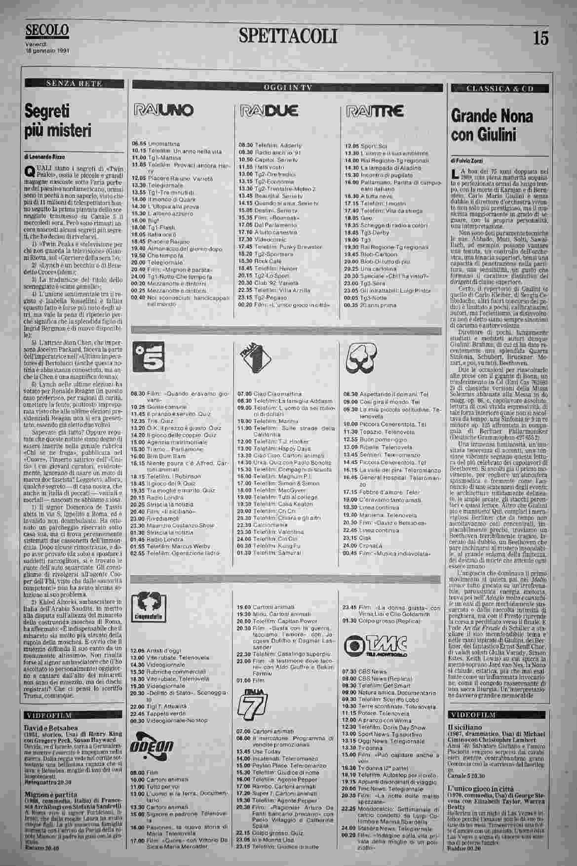 venerdì 18 gennaio 1991