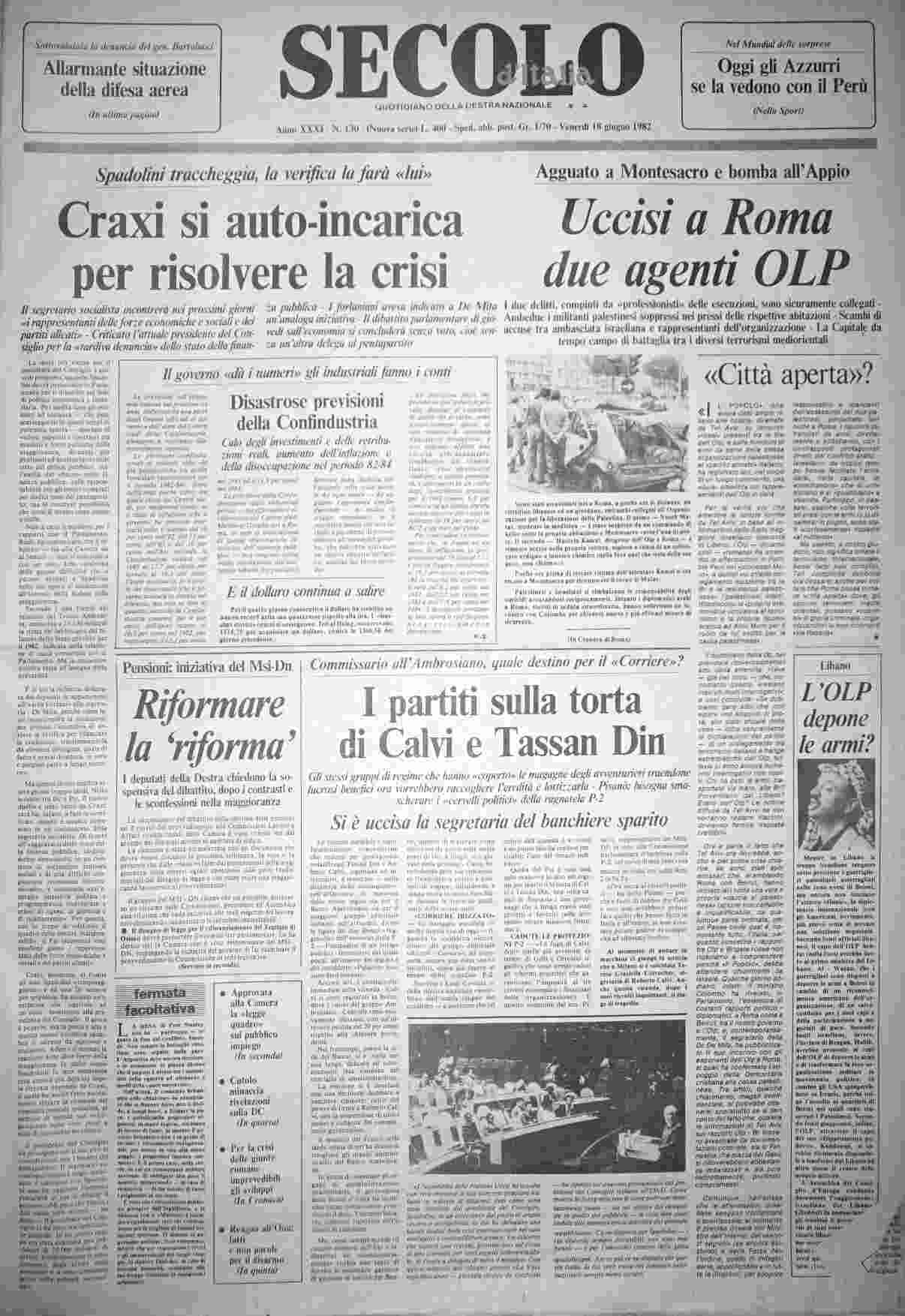 venerdì 18 giugno 1982