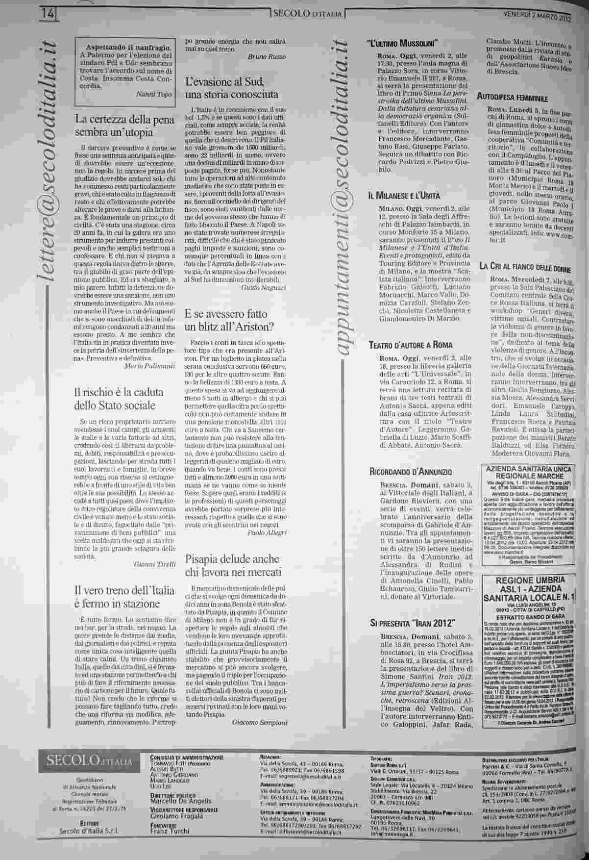 venerdì 2 marzo 2012