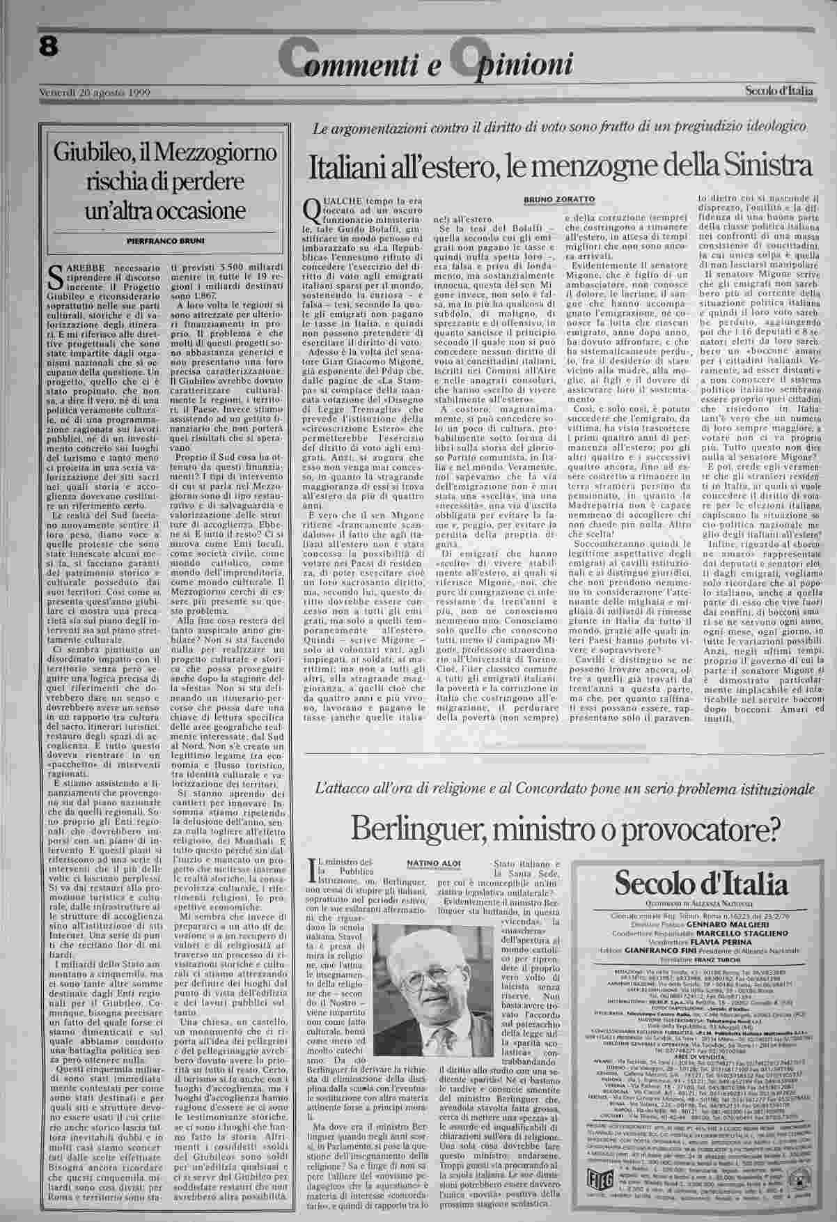 venerdì 20 agosto 1999