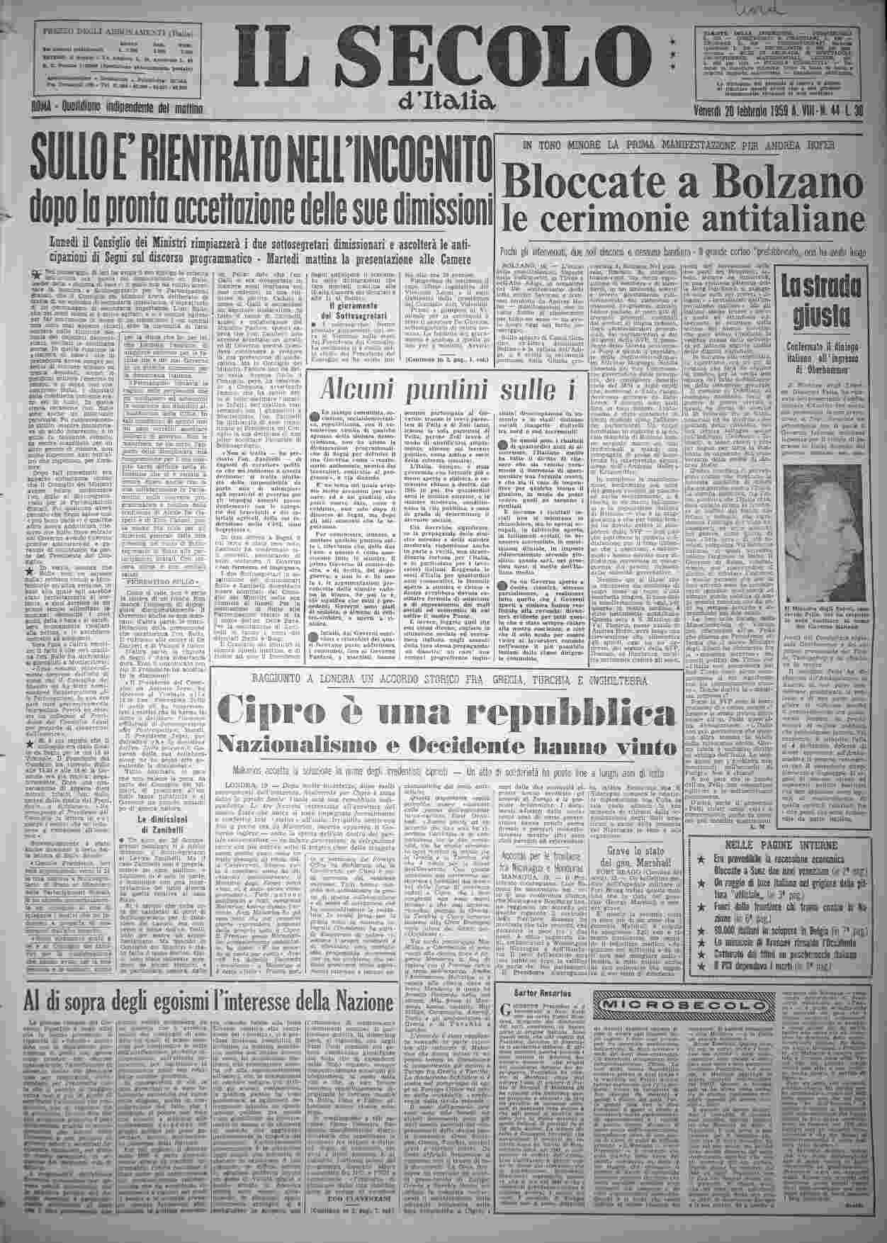 venerdì 20 febbraio 1959