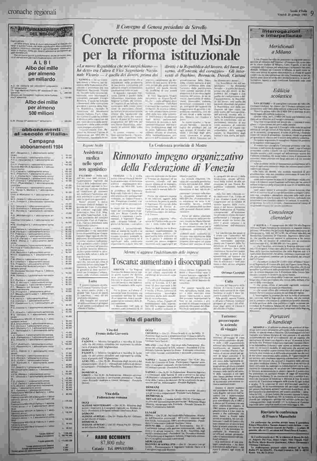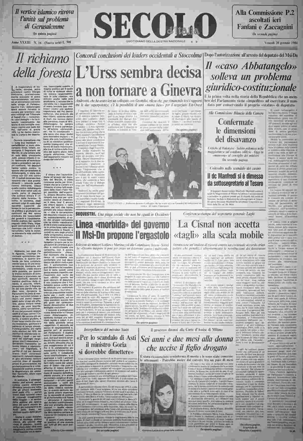venerdì 20 gennaio 1984