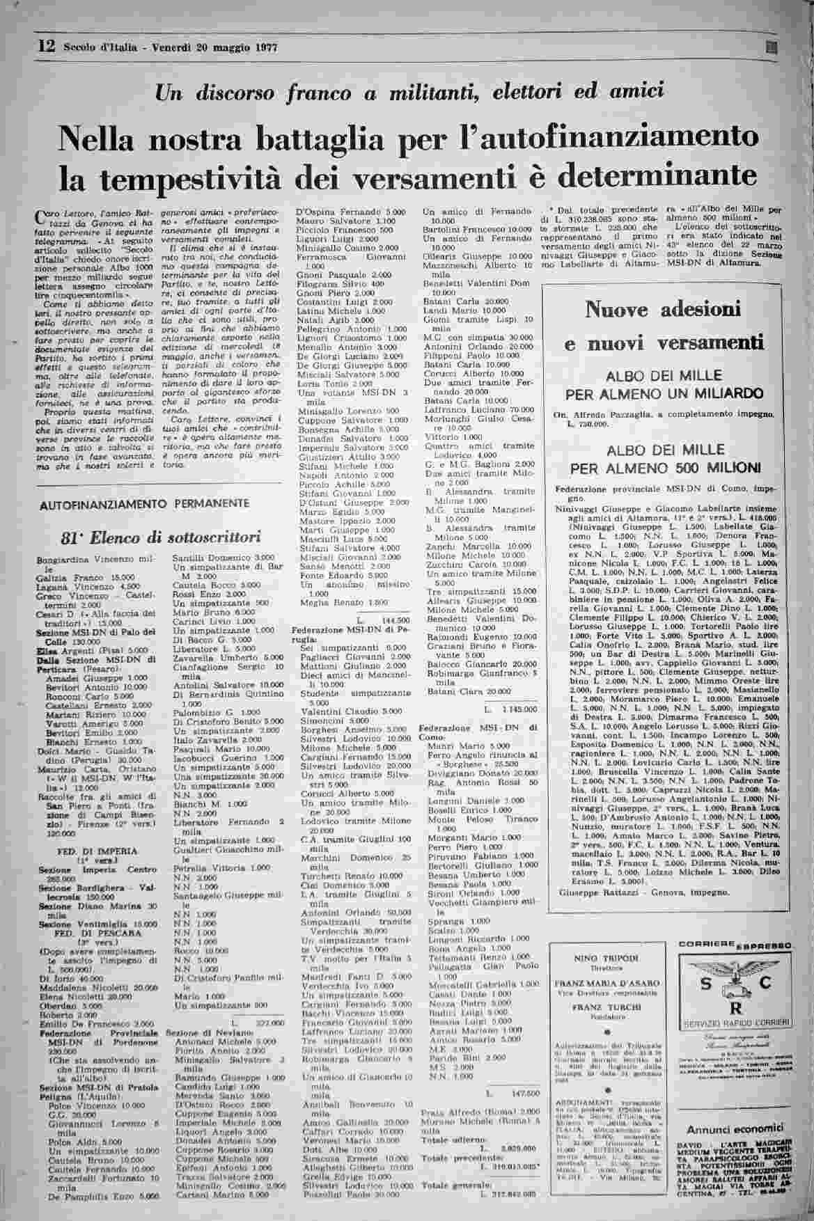 venerdì 20 maggio 1977