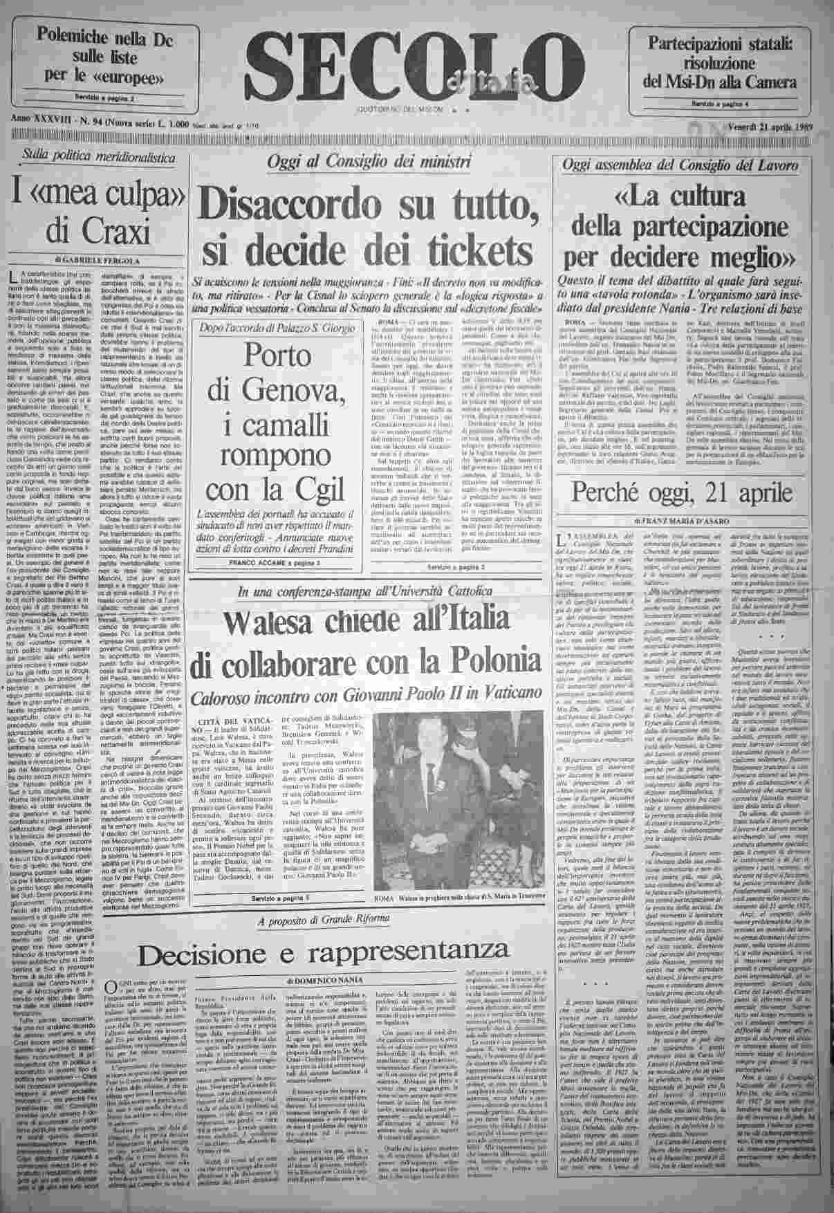 venerdì 21 aprile 1989