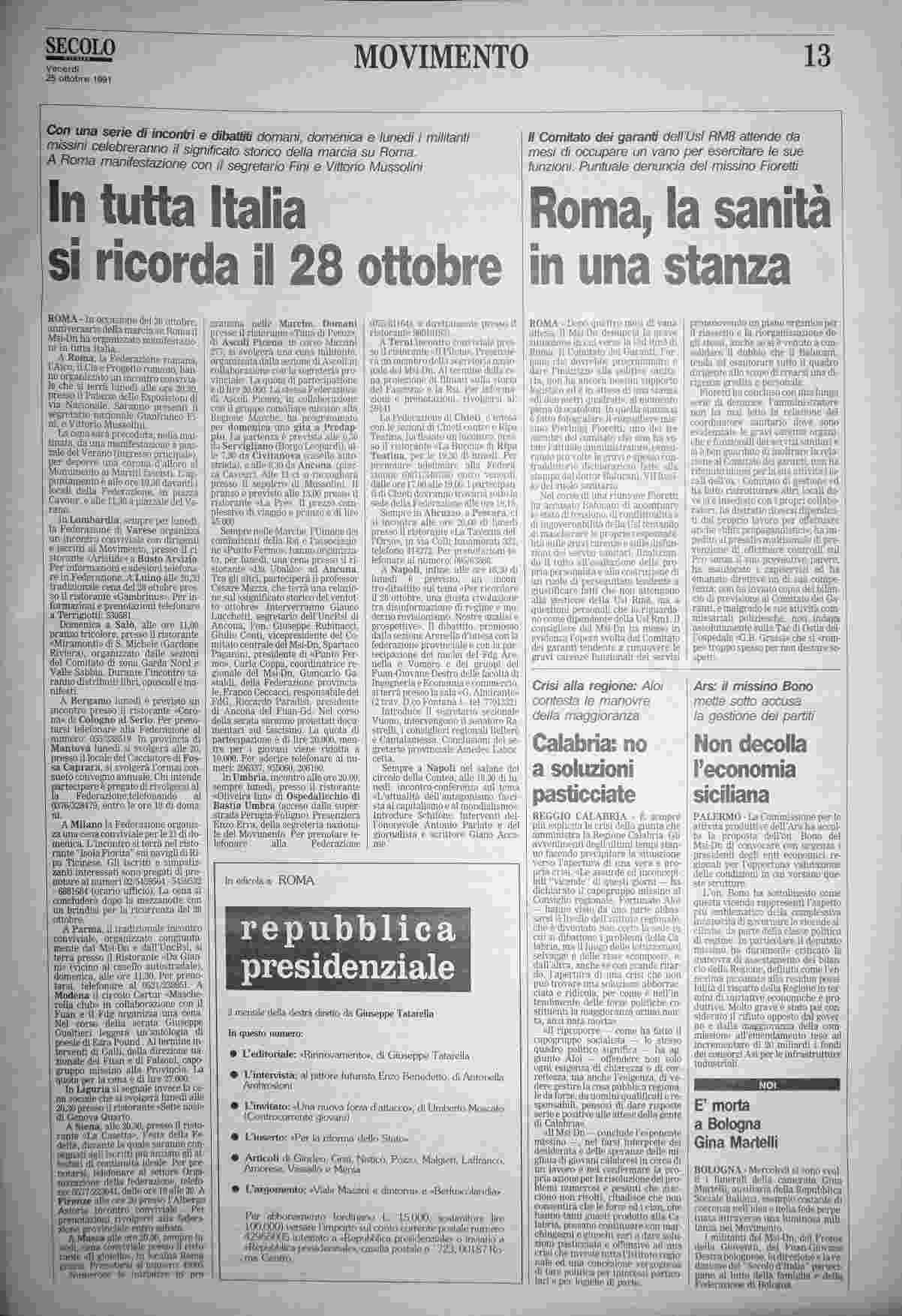 venerdì 25 ottobre 1991