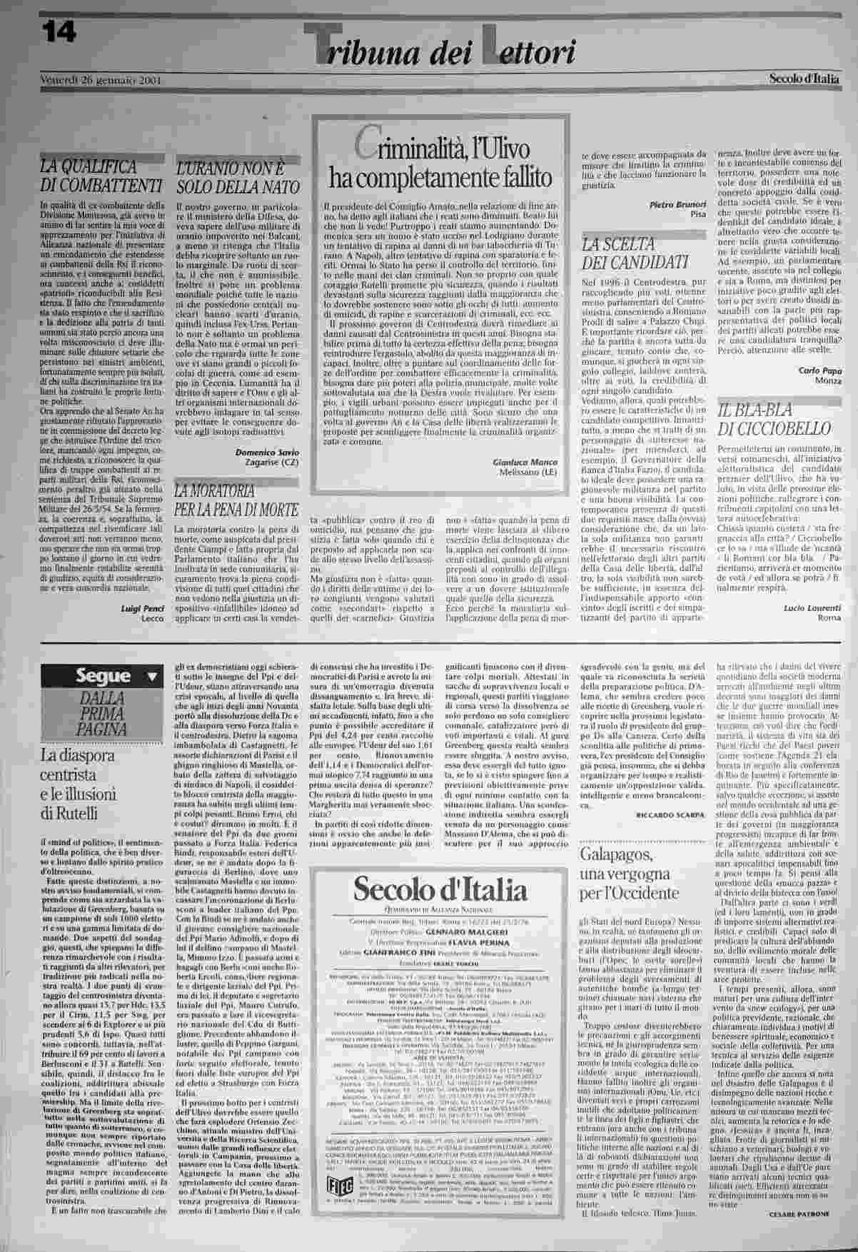 venerdì 26 gennaio 2001