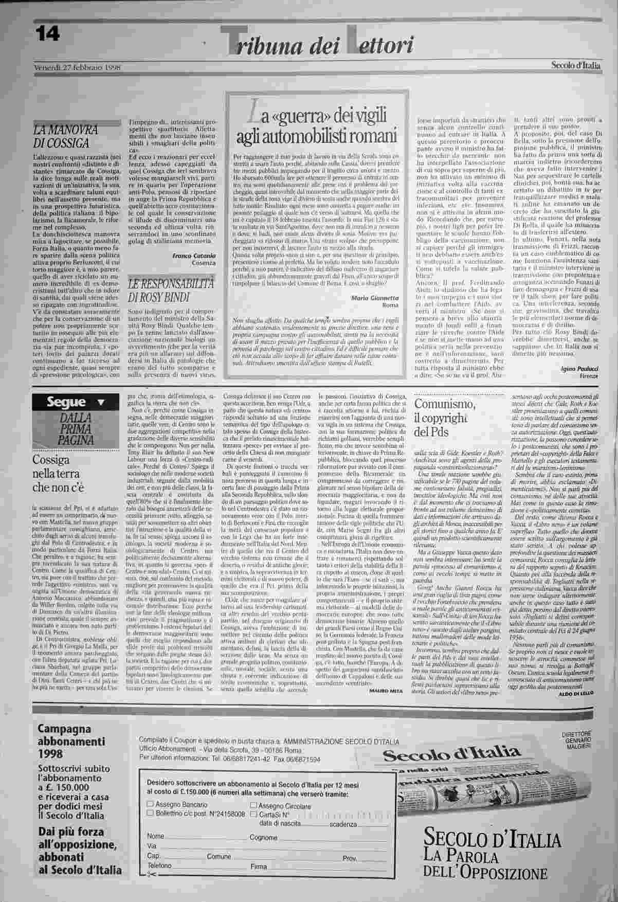 venerdì 27 febbraio 1998