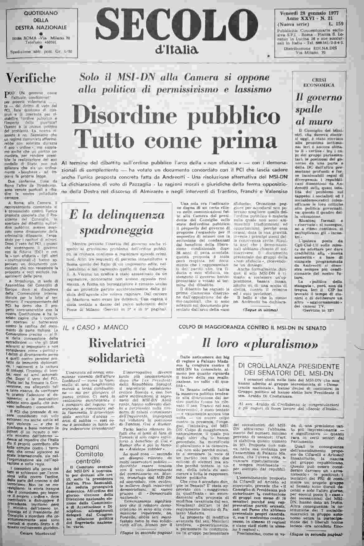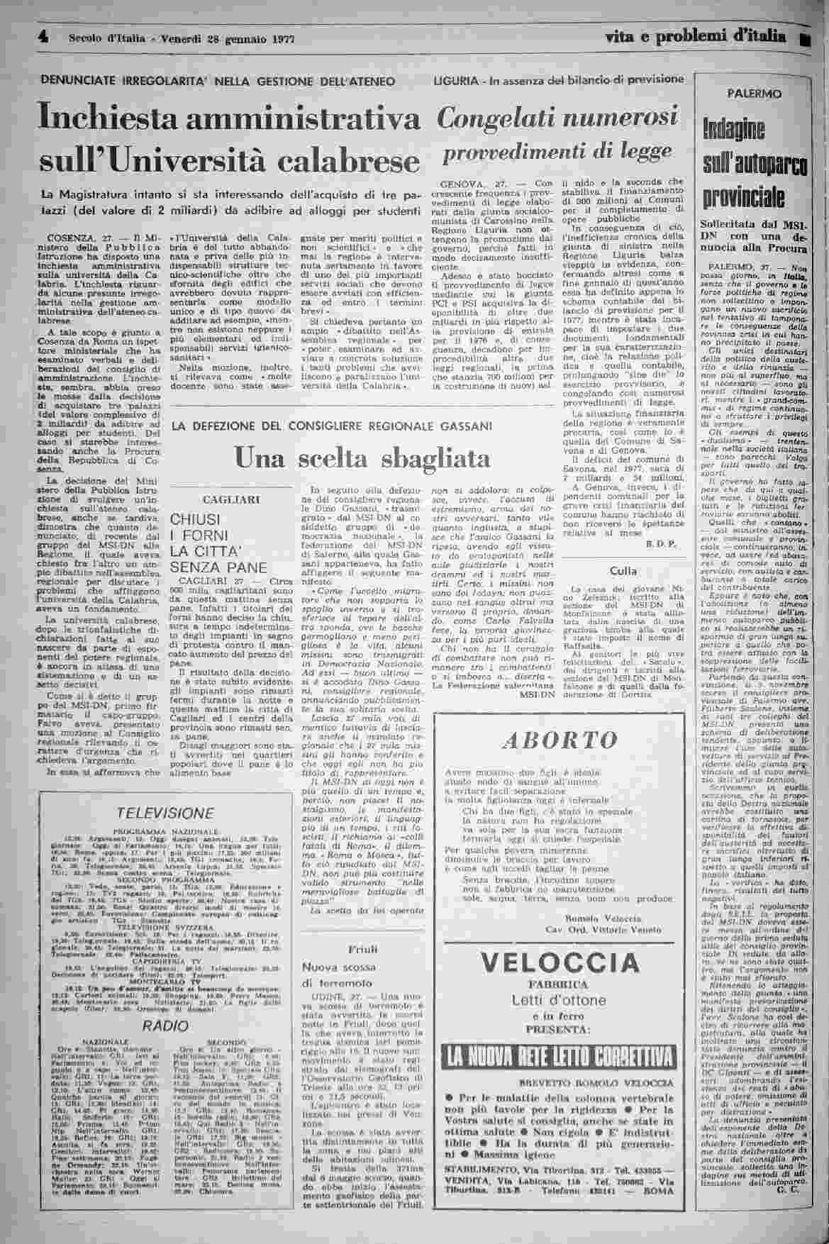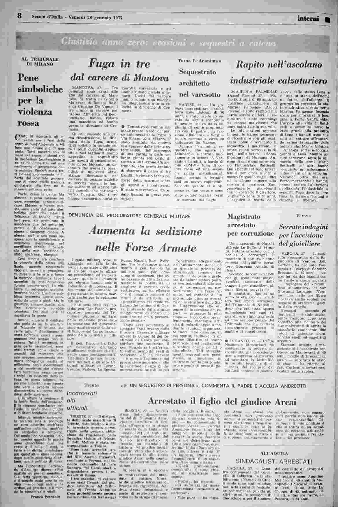 venerdì 28 gennaio 1977