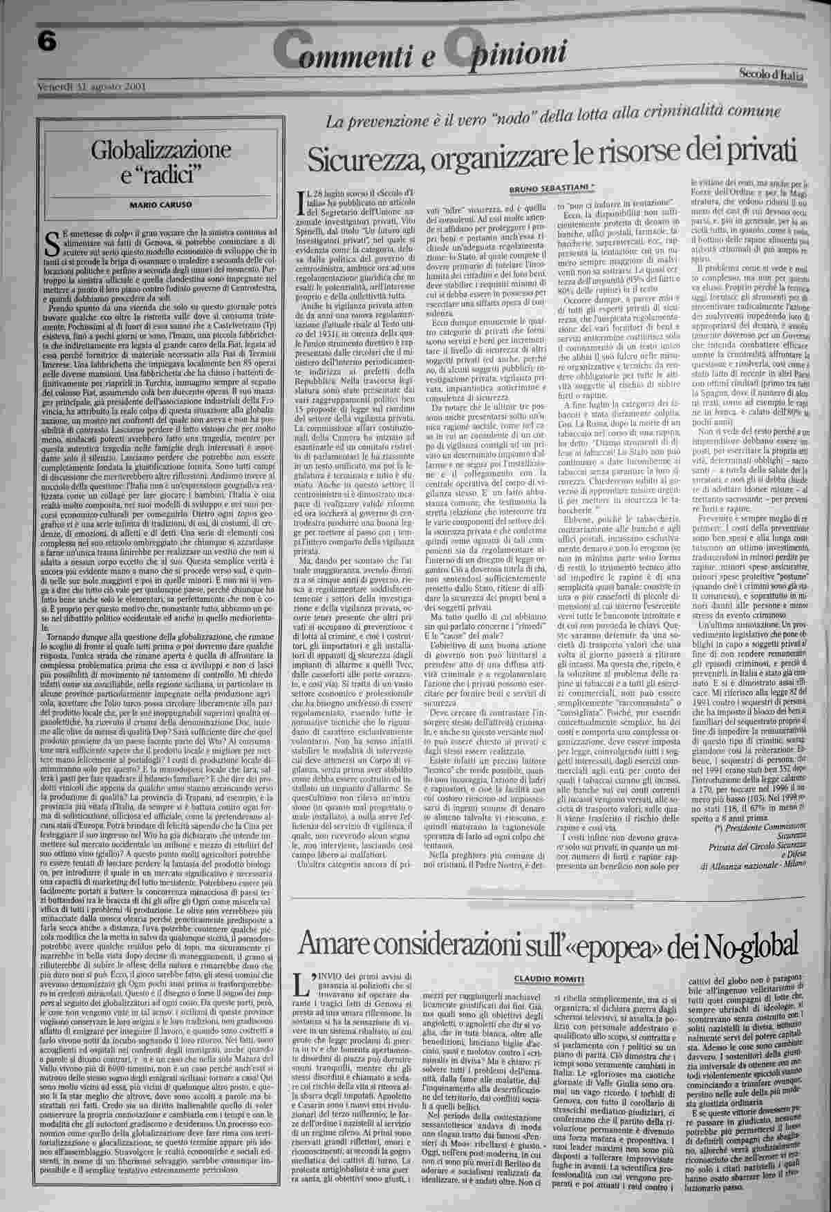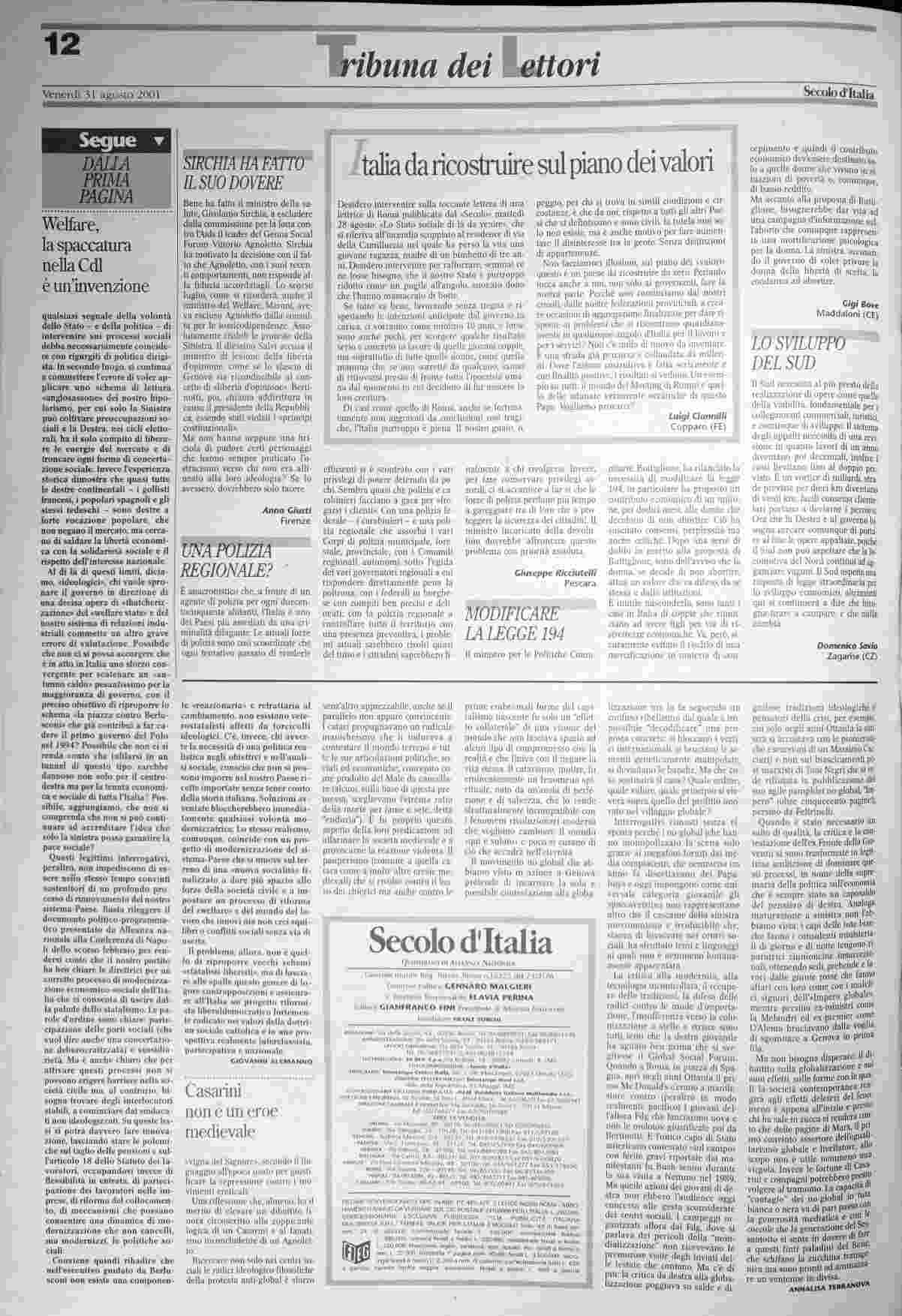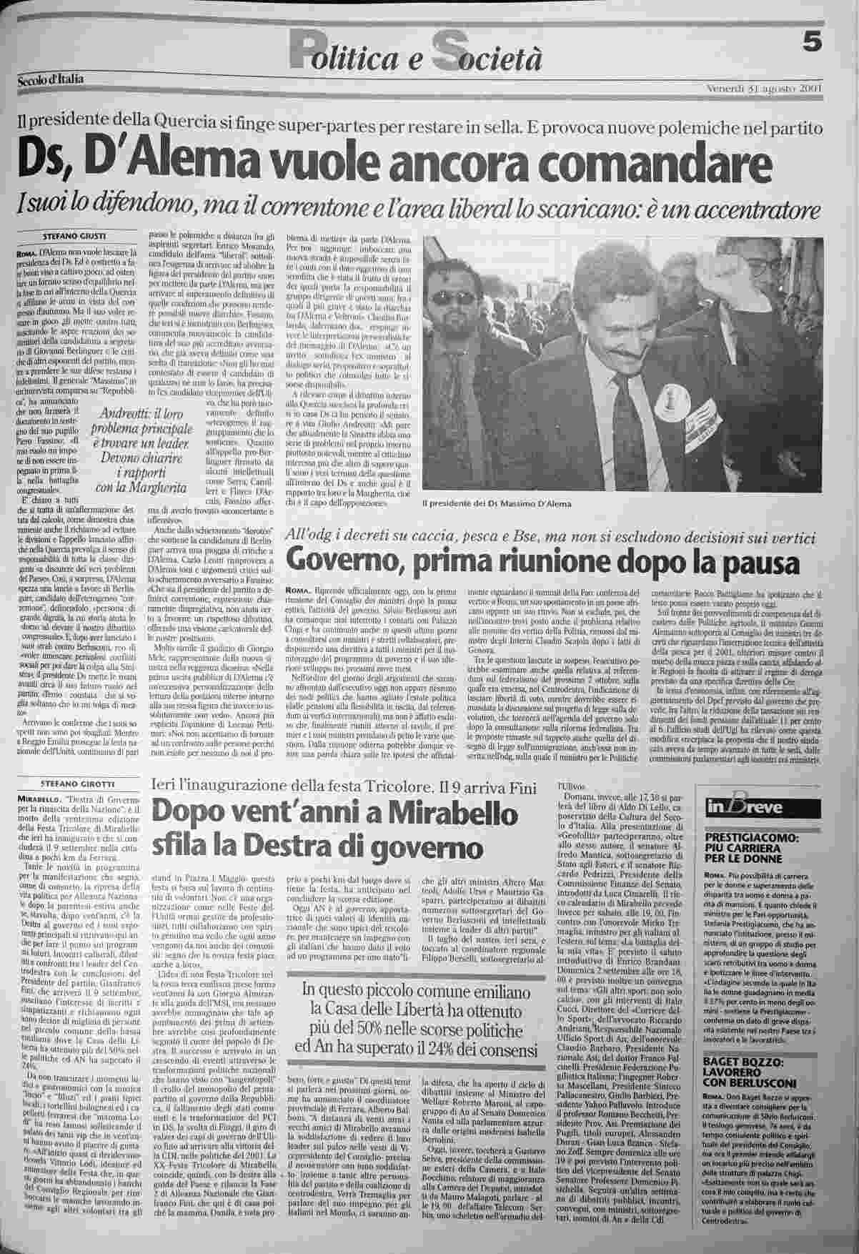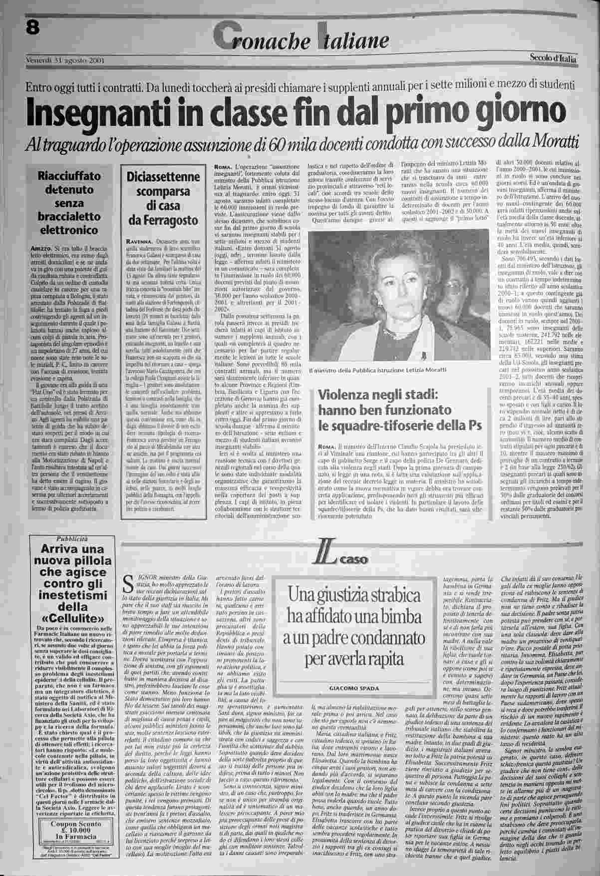 venerdì 31 agosto 2001