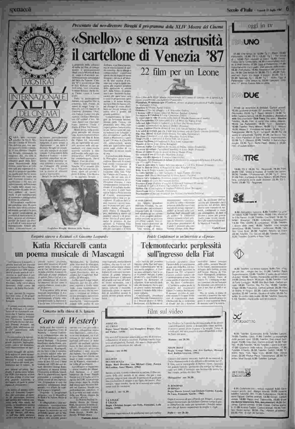 venerdì 31 luglio 1987