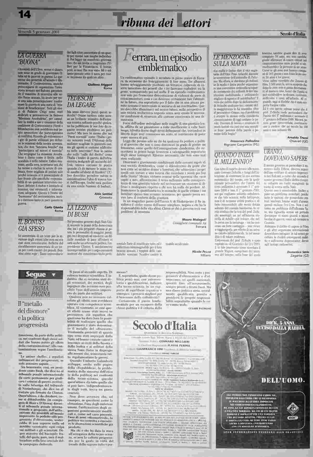 venerdì 5 gennaio 2001