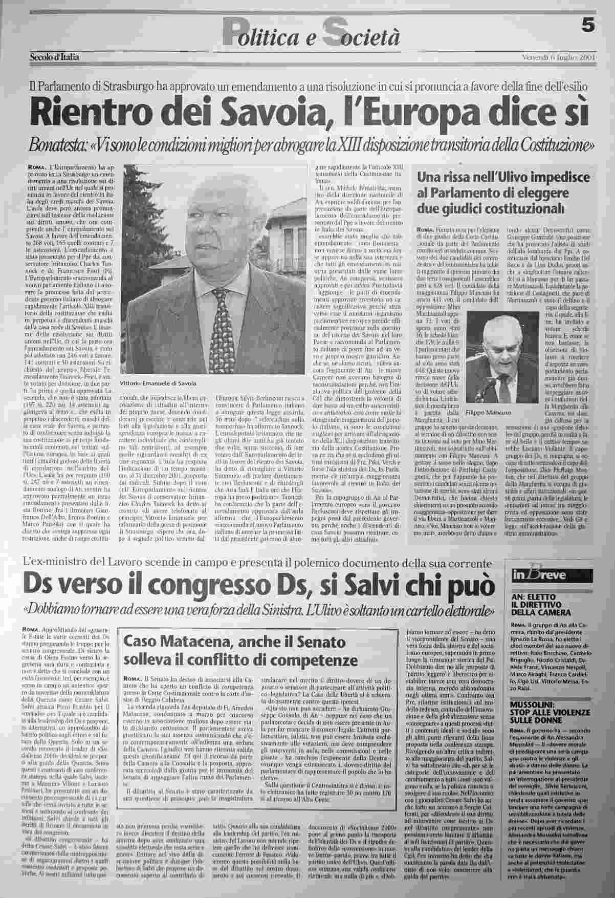 venerdì 6 luglio 2001